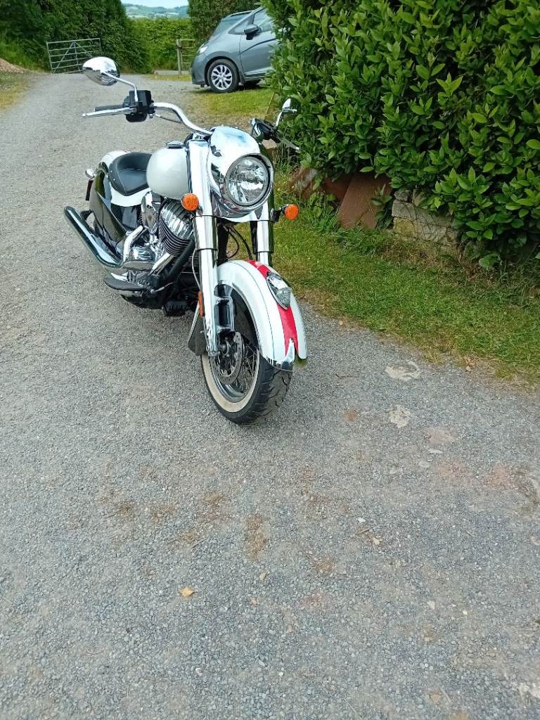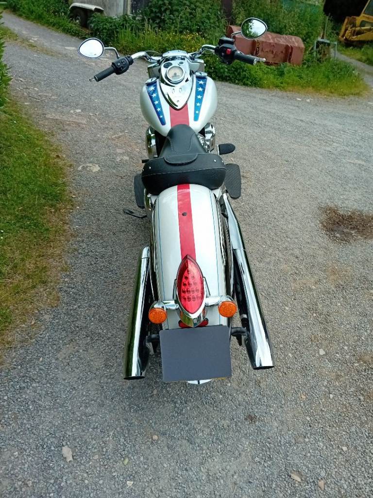 White Pearl paint, black skirts on mudguards, stars and stripes on tank and mudguards, MOT, serviced, new battery, in as new condition.