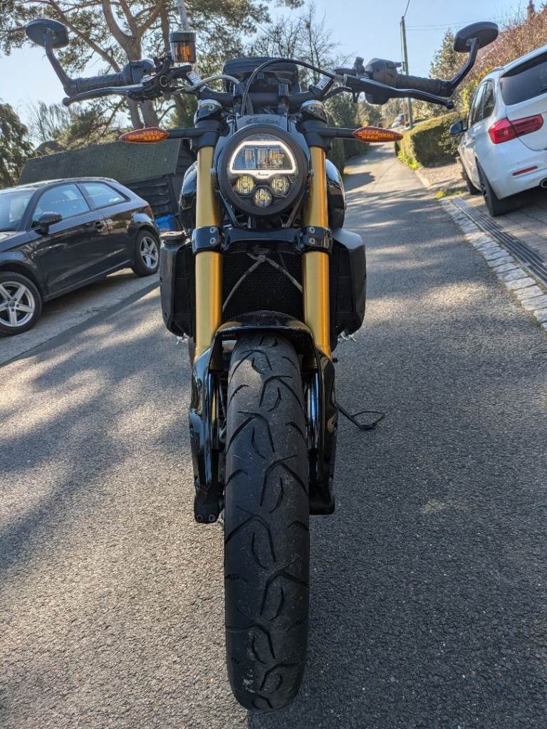 This is my 2019 Indian FTR 1203cc naked monster of a bike, finished in metallic black, based in Whitby, North Yorkshire. Excellent/immaculate condition, only covered just over 5100 miles since new. As the summer is on its way, this might increase slightly. It has a hearty 1203cc V-twin liquid cooled engine giving 125hp.