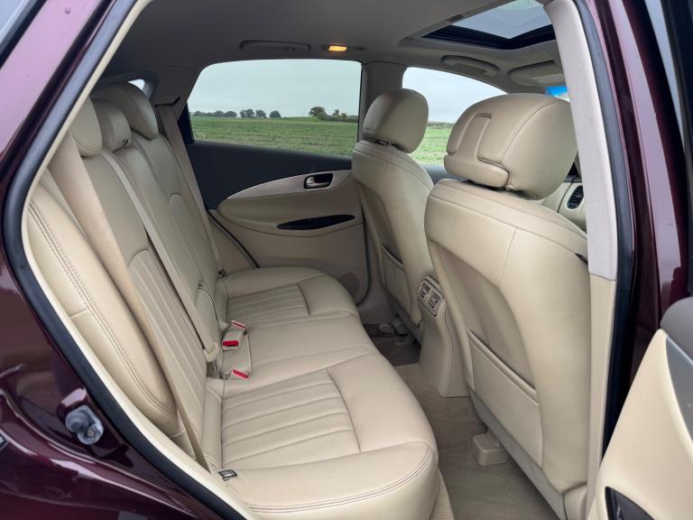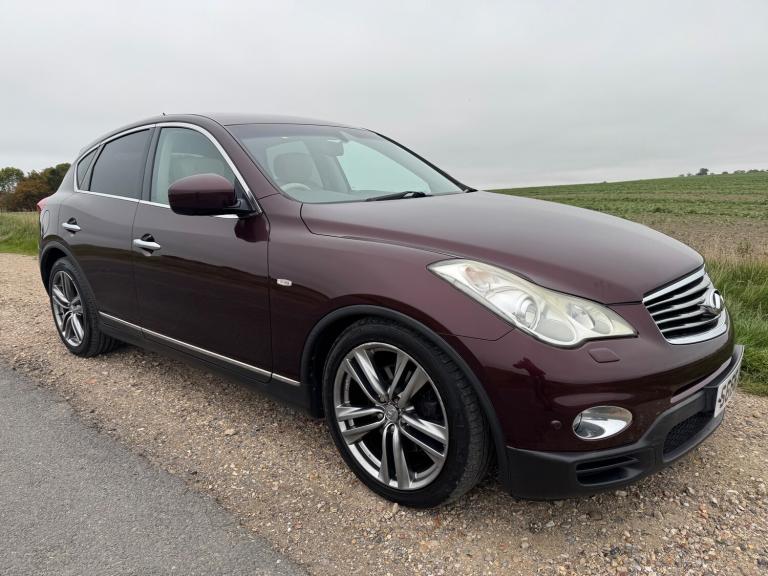 2012 Infiniti EX 3.0 30d V6 Black Premium SUV with 79,000 miles on the clock. This 5-door, 5-seater vehicle runs on a powerful diesel engine, delivering 238 PS through an automatic 4WD transmission. Perfect for families or adventurers, this spacious SUV offers ample room for passengers and luggage, making it an ideal choice for a variety of lifestyles. All of our vehicles are sold with 12 months MOT and a 3 months, 3000 mile warranty included. This can be extended to 6, 12 or 24 months at additional cost. HUGE SPEC and excellent condition Features Include: , air conditioning, bluetooth connection, climate control, colour satnav, door mirrors electrically foldable, dual climate zones, full leather, memory seats, rain-sensing wipers, satellite navigation, usb/ipod interface, xenon headlamps, adaptive cruise control, adjustable steering column, blind spot information, collision avoidance braking, cruise control, esp, front parking sensor, front view camera, lane departure warning, multi-function steering wheel, parking camera, parking sensors, power steering, rear parking sensor, steering wheel reach adjustment, surround view, traction control, trip computer, abs, air bag, brake assist, child locks, isofix child seat anchor points, pedestrian airbag, service indicator, alarm, anti-theft system, immobiliser, keyless entry, locking wheel nuts, privacy glass, remote alarm, remote central locking, auto-dip rearview, electric mirrors, electric windows, heated door mirrors, auxiliary input socket, bose, cd player, media storage, radio, radio/cd multichanger, steering wheel audio controls, stereo, electric seats, electrically adjustable drivers seat, electrically adjustable passenger seat, front armrest, heated seats, sports seats, folding rear seats, rear armrest, rear headrests, 2 zone climate control, electric sunroof, alloy wheels, auto lighting, body coloured bumpers, front fog lights, metallic paintwork, rear spoiler, roof rails