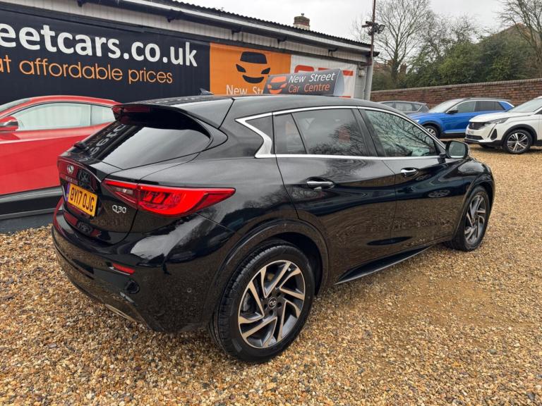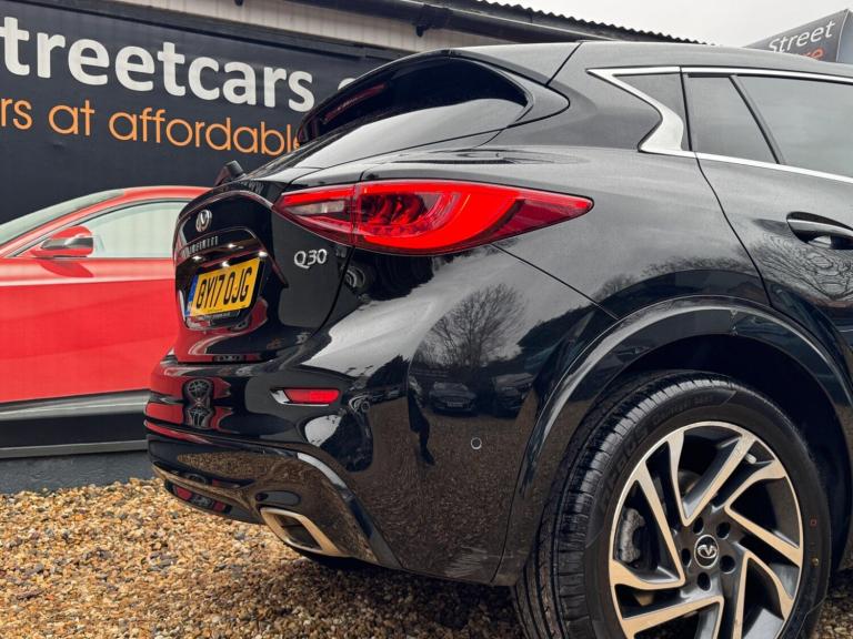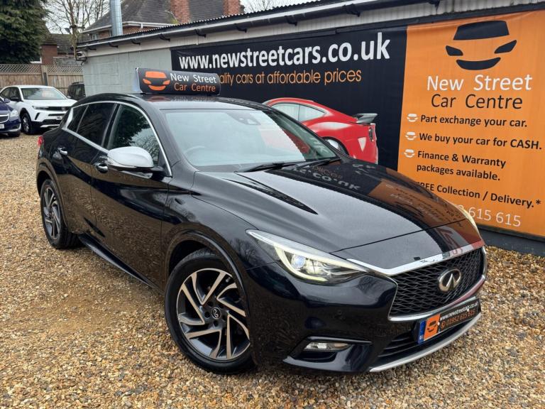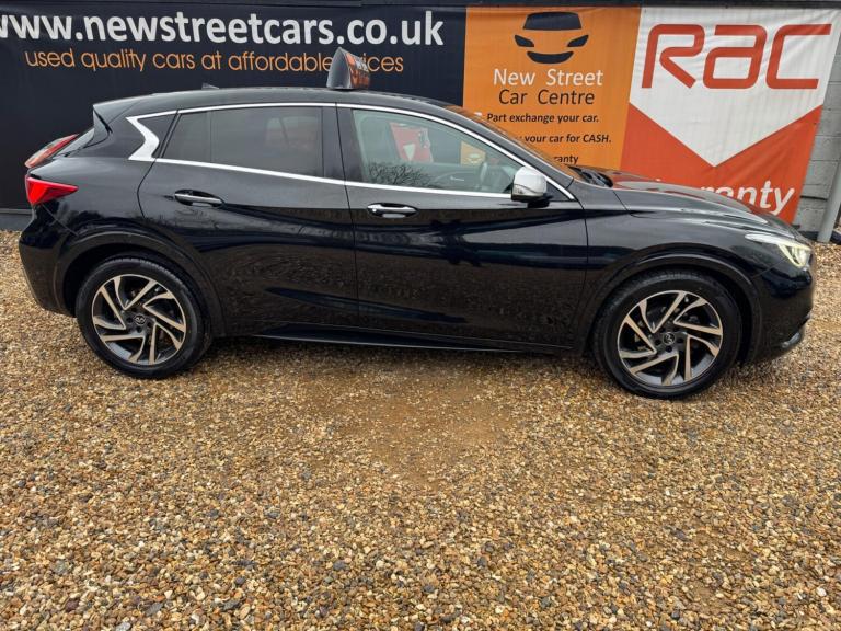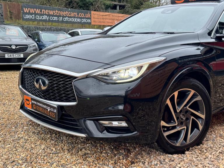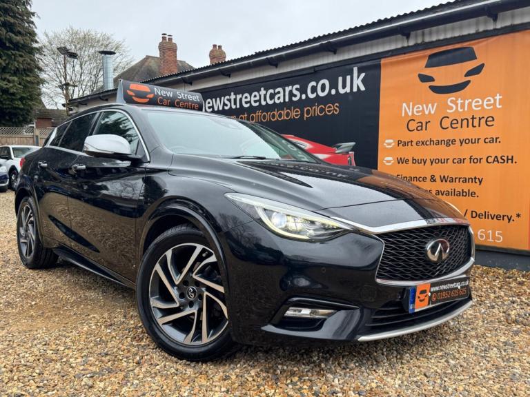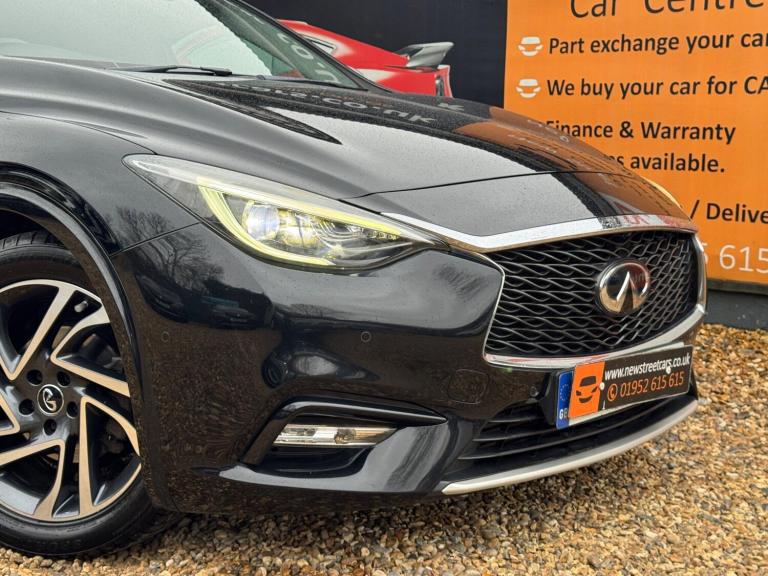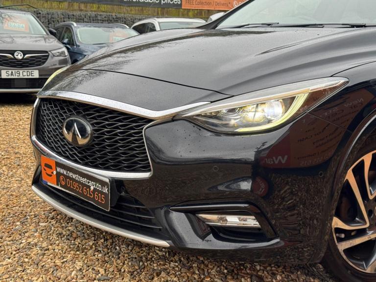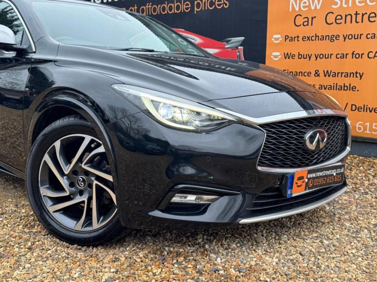 This 2017 Infiniti Q30 d City Black Edition boasts a clear vehicle history and has been owned by only two careful owners. Powered by an efficient 1.5L Diesel Engine meeting Euro 6 emissions standards, this stylish hatchback offers a refined driving experience. Its City Black Edition trim comes equipped with a comprehensive Around View Monitor featuring Moving Object Detection, providing a 360 degree camera view for effortless parking assistance. You'll also benefit from LED headlights with automatic activation, along with front and rear parking sensors for added convenience and safety.The Infiniti Q30 d City Black Edition stands out with its advanced parking technology, including the Around View Monitor and front and rear sensors, making manoeuvring in tight spaces significantly easier than in many other vehicles. The inclusion of LED headlights with automatic activation further enhances visibility and safety, ensuring you are always well lit. This particular example, with its low owner count and clear history, represents a well maintained and desirable choice for those seeking a premium compact car.We are proud to present this Infiniti Q30 1.5d City Black Edition Euro 6 (s/s) 5dr that comes with a service history for added peace of mind. It comes with 2 owner and has just been serviced. 12 months MOT included, You have the option to purchase RAC warranty with the option to extend.At New Street Car Centre we have over 25 years experience as the largest and most trusted used car dealership in Telford. We offer award winning customer service, great prices and excellent preparation standards. Each vehicle undergoes quality control inspections and a complimentary history check for your added peace of mind.we have also included additional specification but please always check the exact specification details with ourselves prior to purchase as models can vary