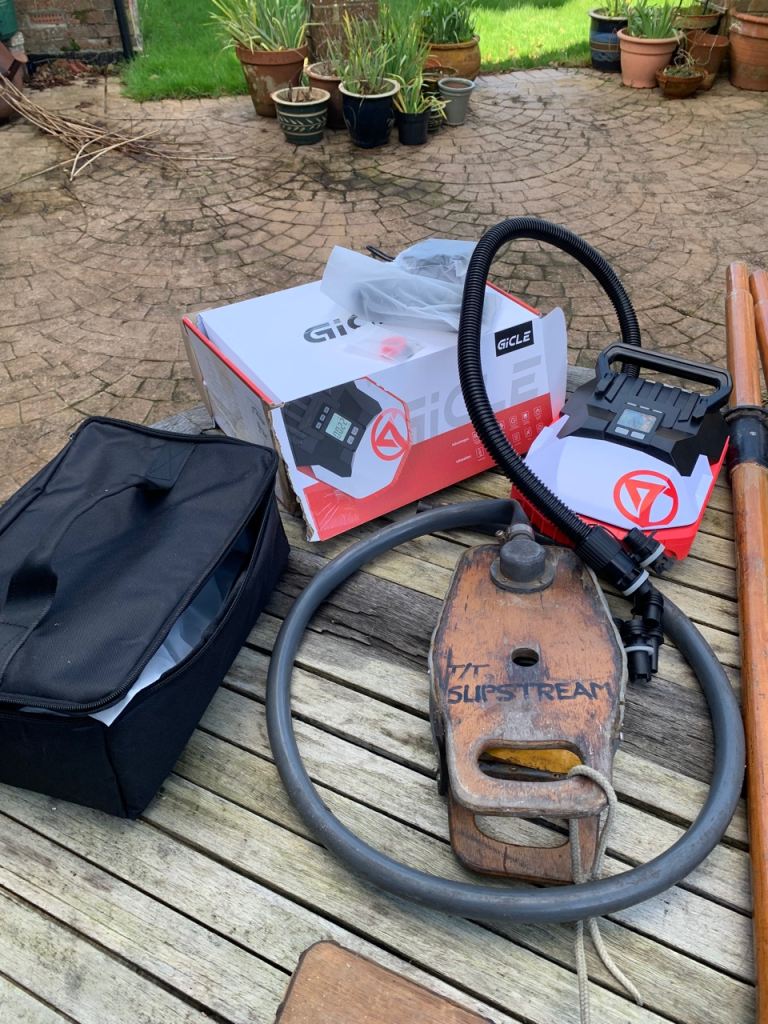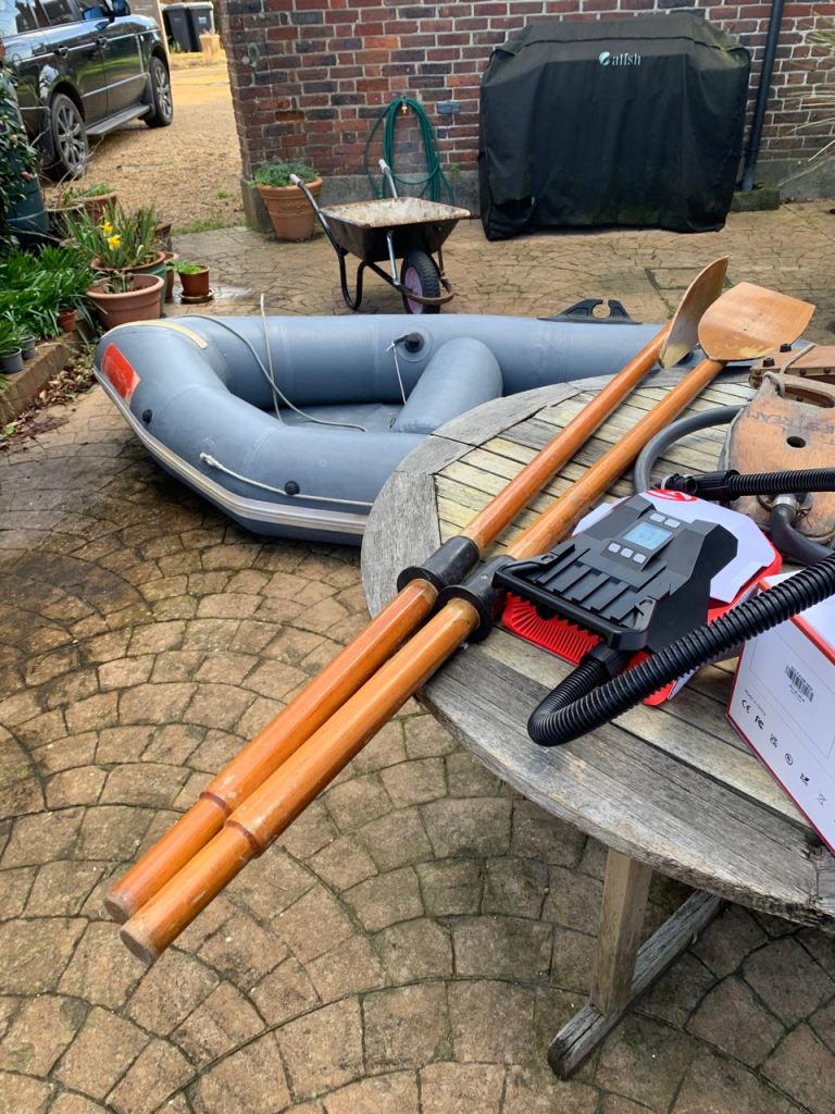 This inflatable has been lovingly put to good use and will continue to serve its new owner as a tender and a liferaft. I am selling it complete with oars, outboard mount, aft thwart, foot pump and a new Gicle rechargeable inflator/deflator.~`