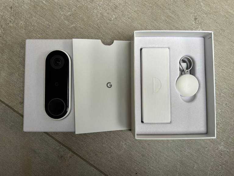 Brand new, but taken out of the box Wired Google Doorbell. Getting rid of as we needed a non-wired doorbell and were past the date to return it. Never mounted or used.