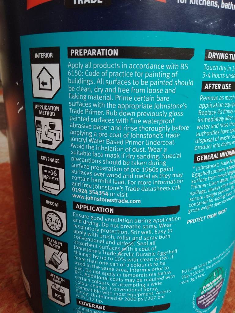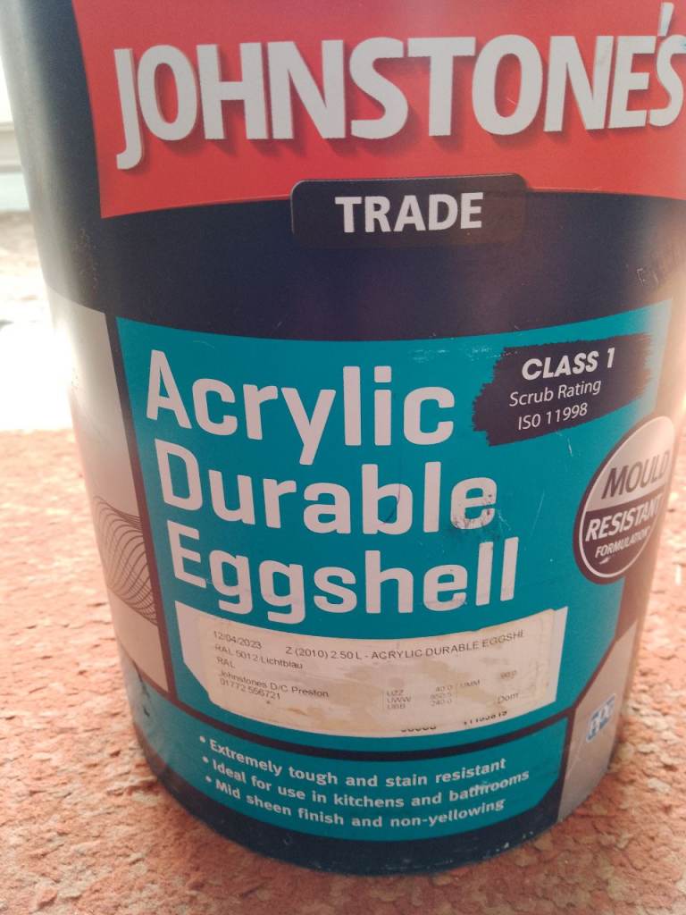 Johnstone acrylic eggshell Mold resistance Blue kitchen bathroom paint just short of 5 litres