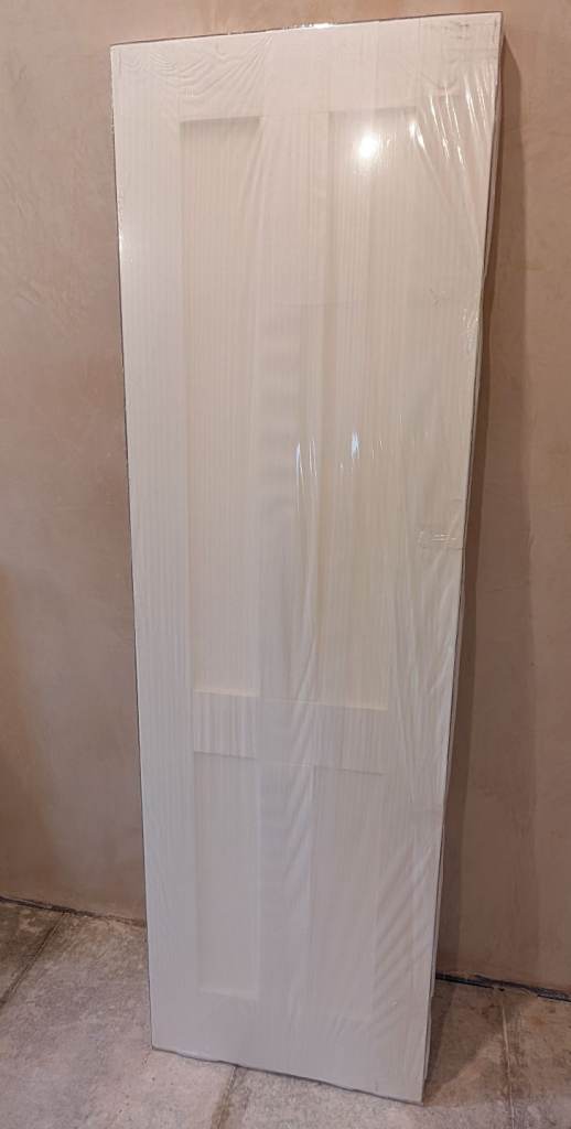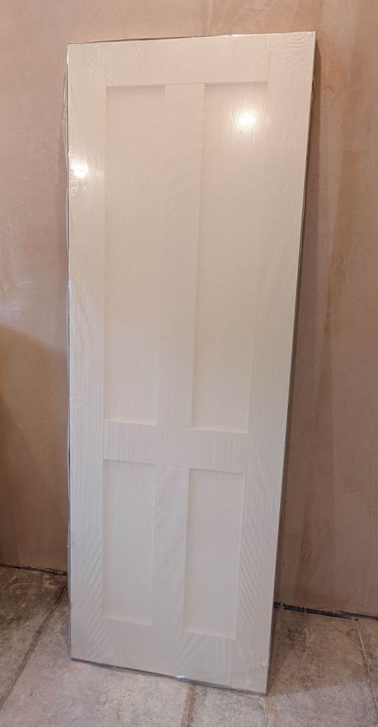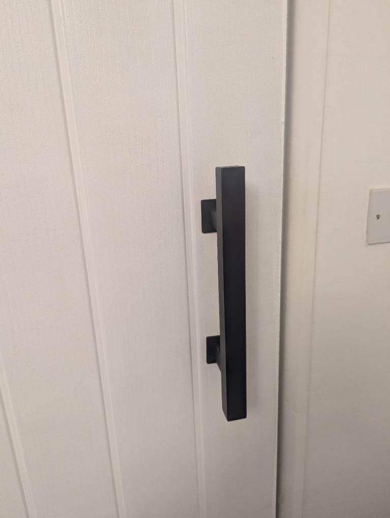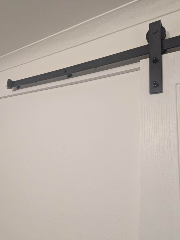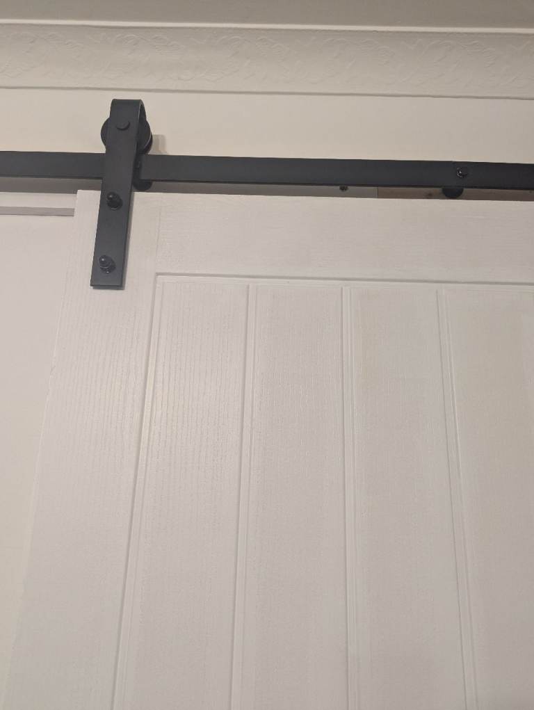 Barn door and full rail kit, white door 33x78 inches, heavy duty black rail 6 foot, buyer to take down