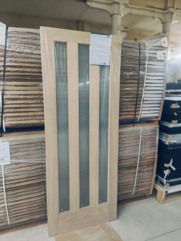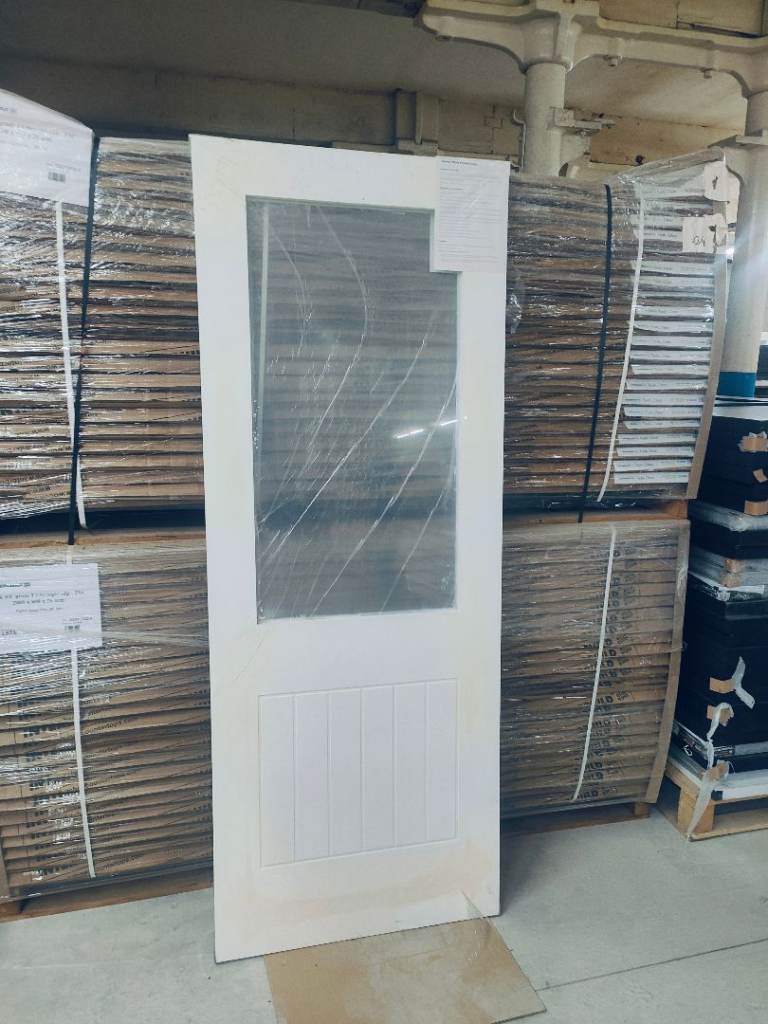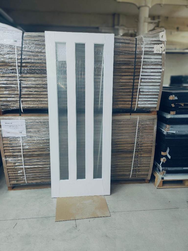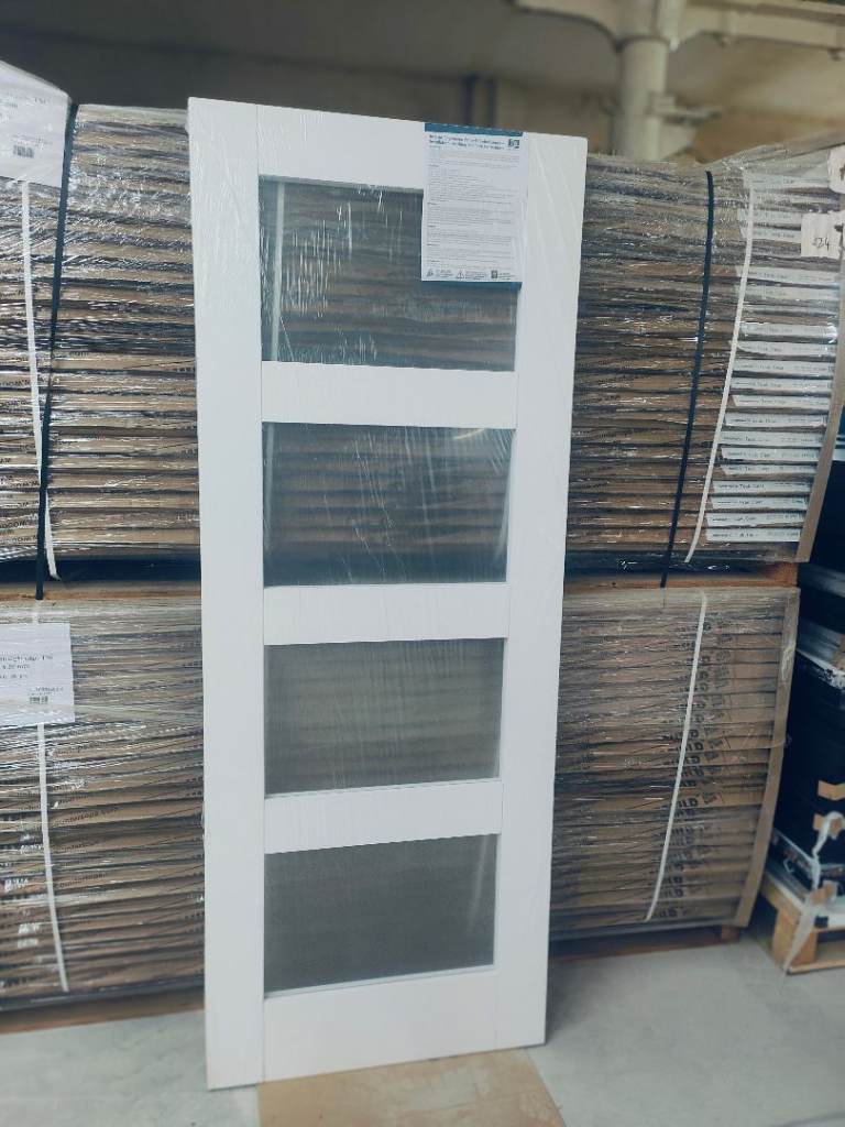 Barn door and full rail kit, white door 33x78 inches, heavy duty black rail 6 foot, buyer to take down