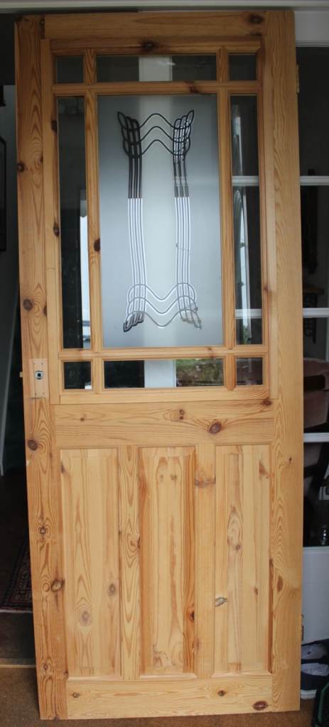 Ex B&Q Pine half-glazed panel-door. H197 x W76 x Thk3.4cm toughened glass Used in VG condition