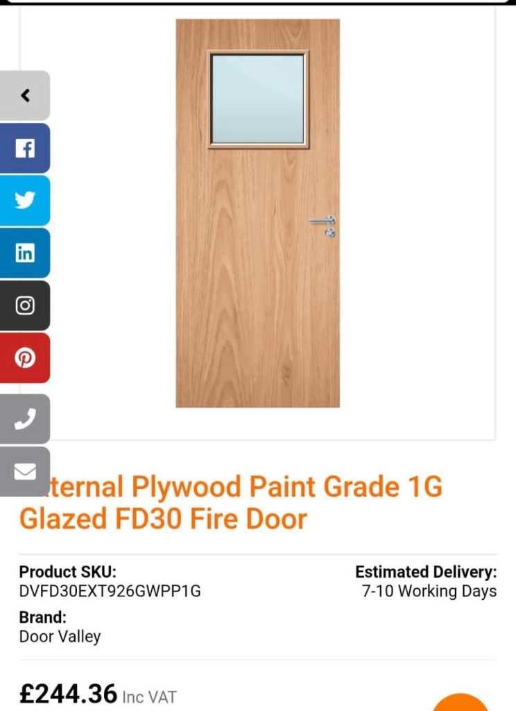 Internal grained 4 panel fire rated door. 1995 x 750 x 44mm.