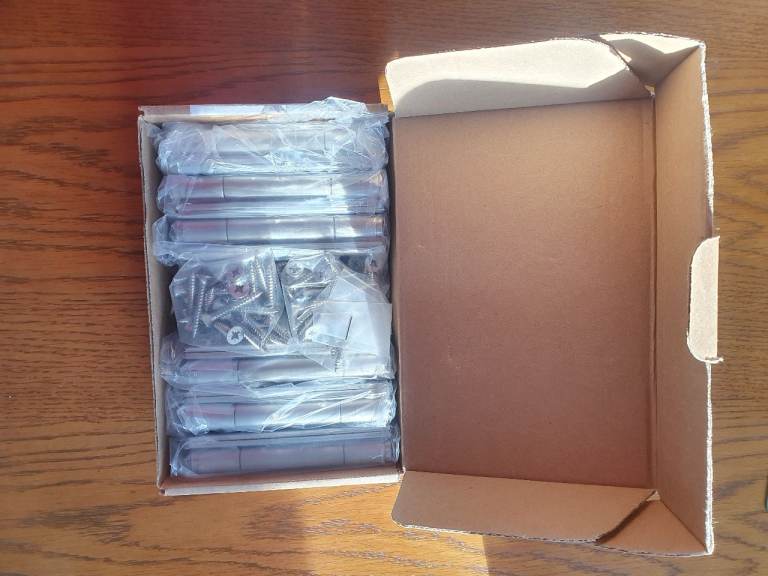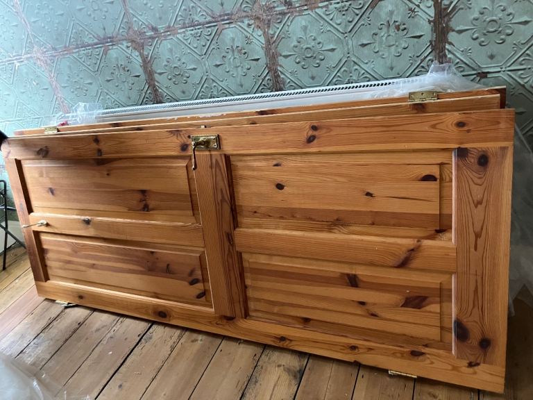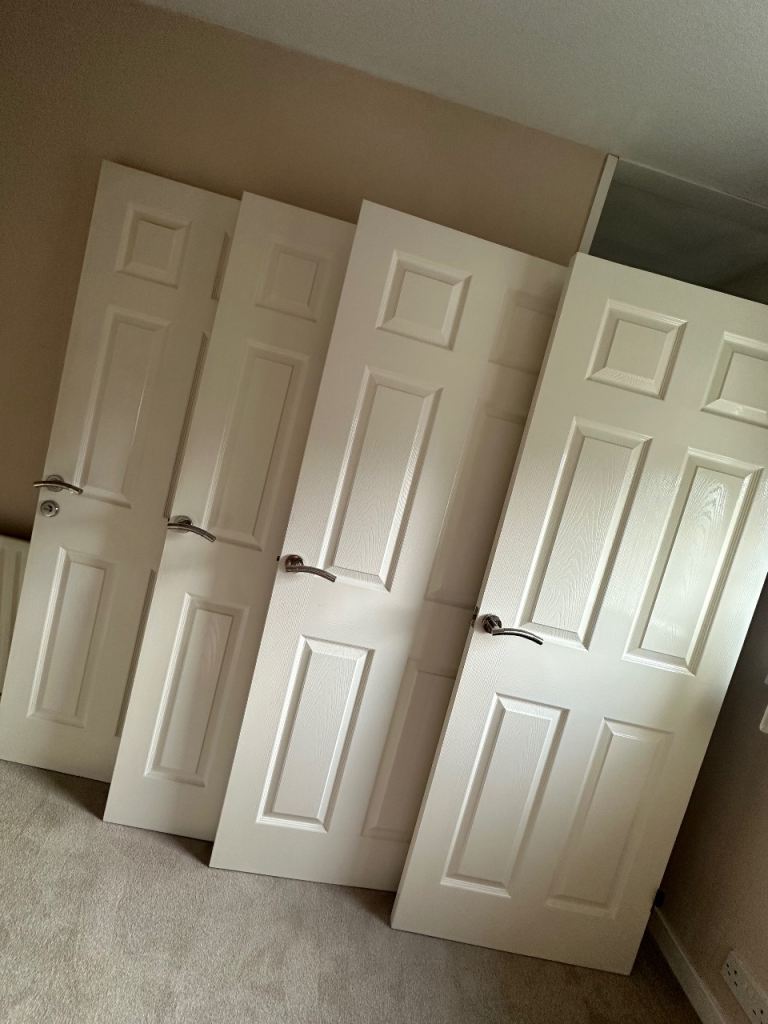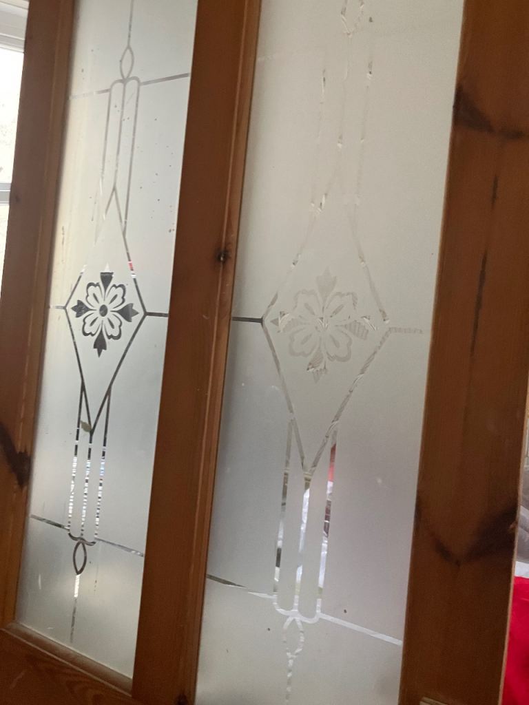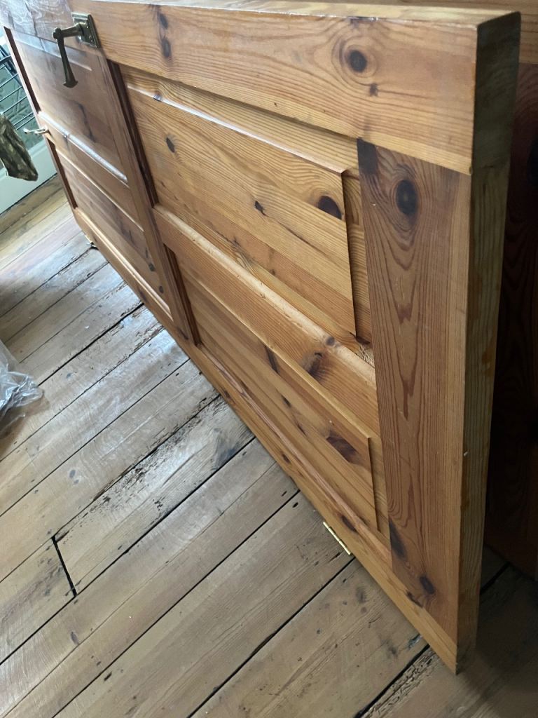 Varnished pine wood door, including brass handles. Standard internal door size.