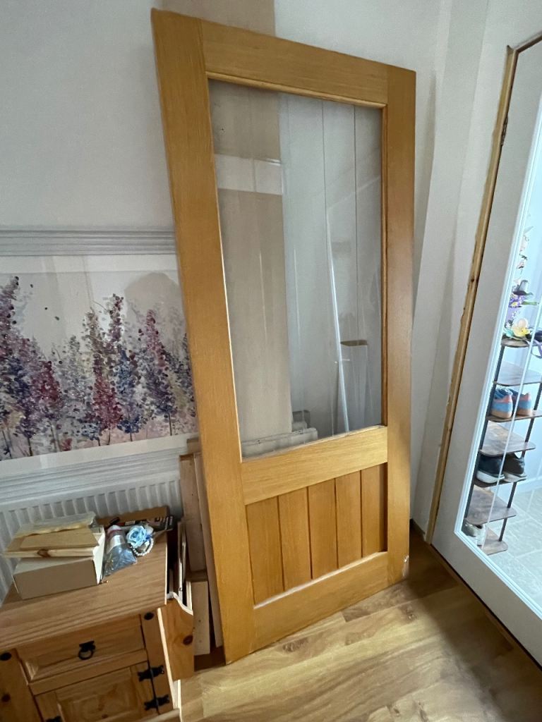 3 x internal wood doors (meranti wood I think). All in good condition complete with door latches and locks but no handles.