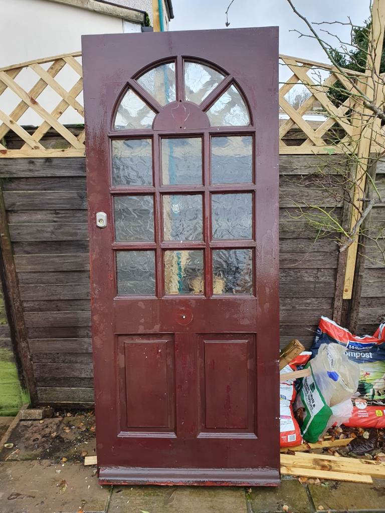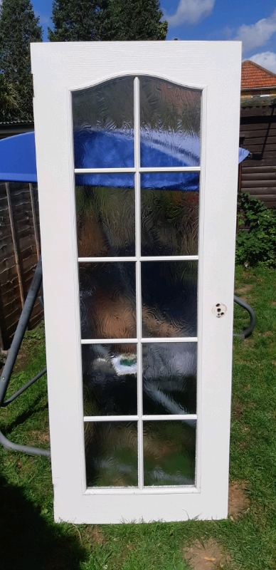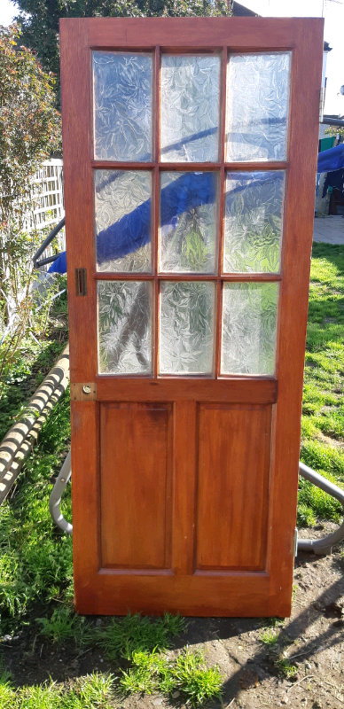 Glass panelled oak veneered door. Size is 1965 mm height and 830 width.