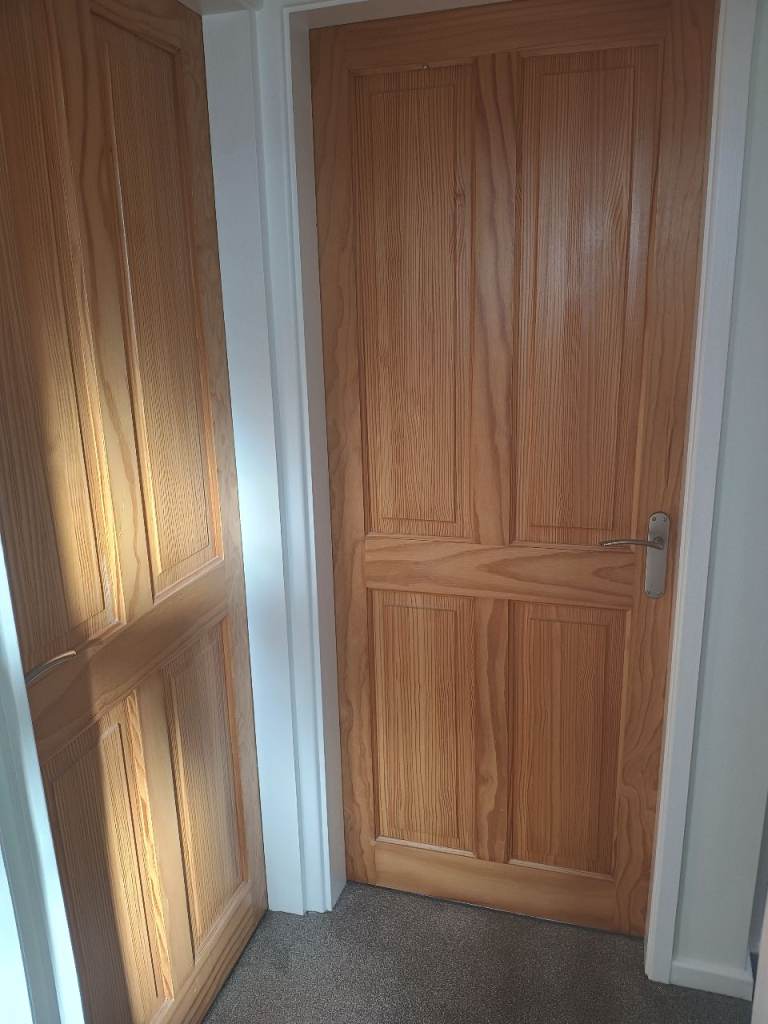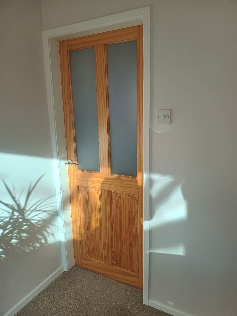 10 pine solid pine doors with handles and hinges - 7 solid and 3 partly glazed.