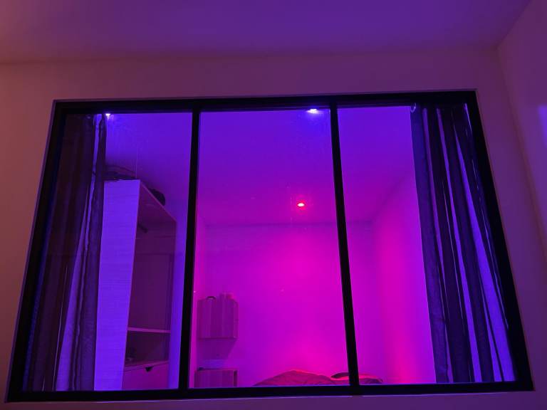- Smart lighting system controllable via smartphone (warm/cool light and colors in the bedroom)