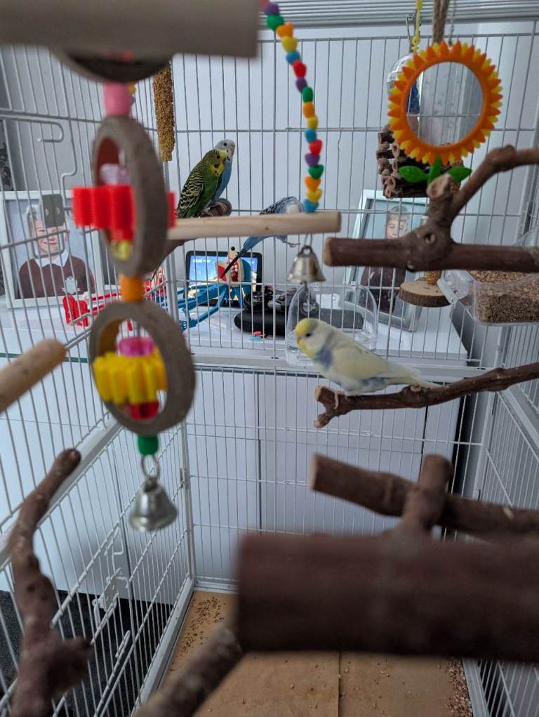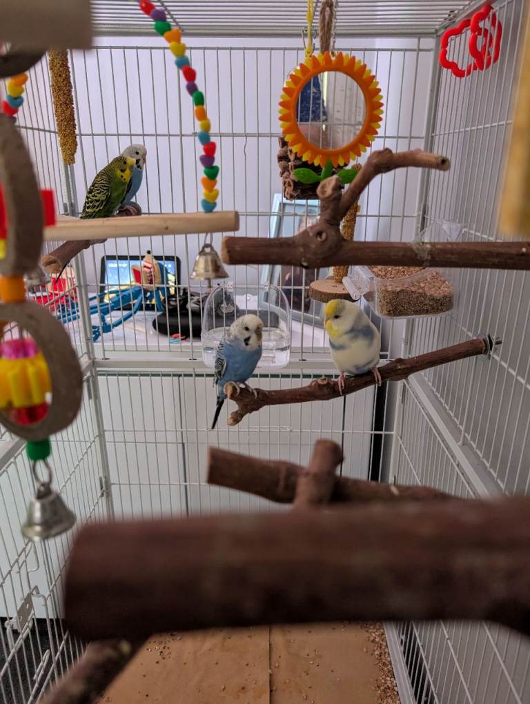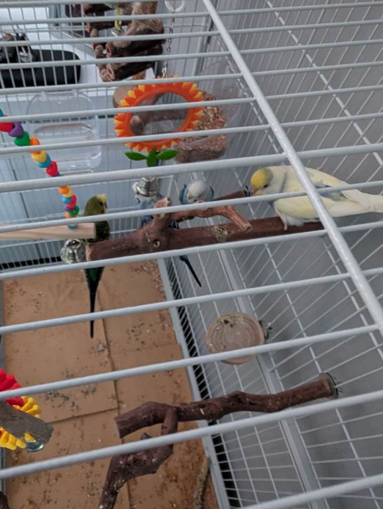 4 budgies for sale all about a year old and big gage on wheels and accessories for sale genuine reasons for sale