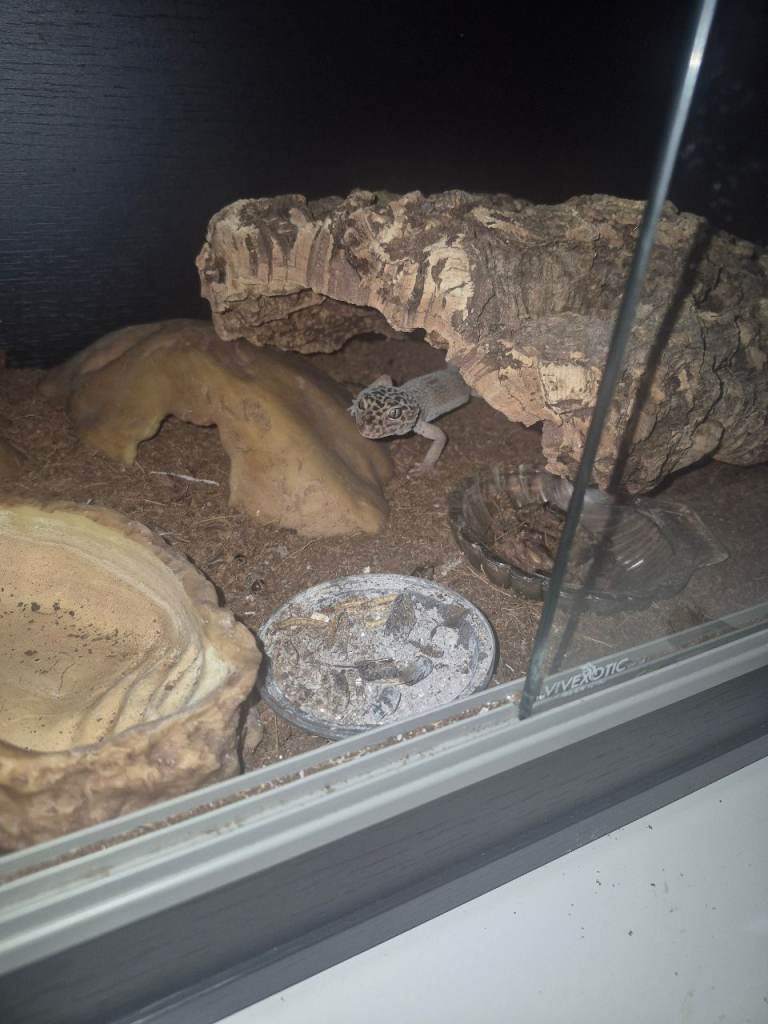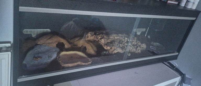 Full set up included, tank- heater, thermometer, heat lamp, tank decor, feeding bowls etc....
