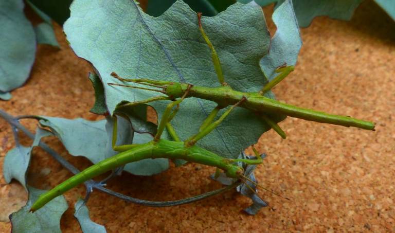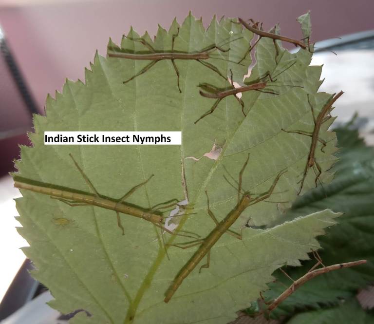 The nymphs do need young, tender, Eucalyptus Gunni as a food plant , I do keep them in smaller enclosures when young as the supply of such EG is not always plentiful. I use florist foam to keep the vegetation fresher longer. Vegetation should be lightly spayed for their moisture/drinking needs. As they grow they will accept bramble but always offer EG for breeding success.