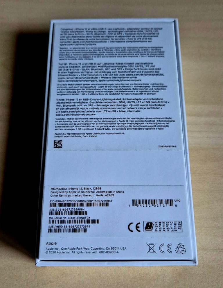 Apple iPhone 12 128GB Black - With Original Box and Charging Cable - Excellent Condition