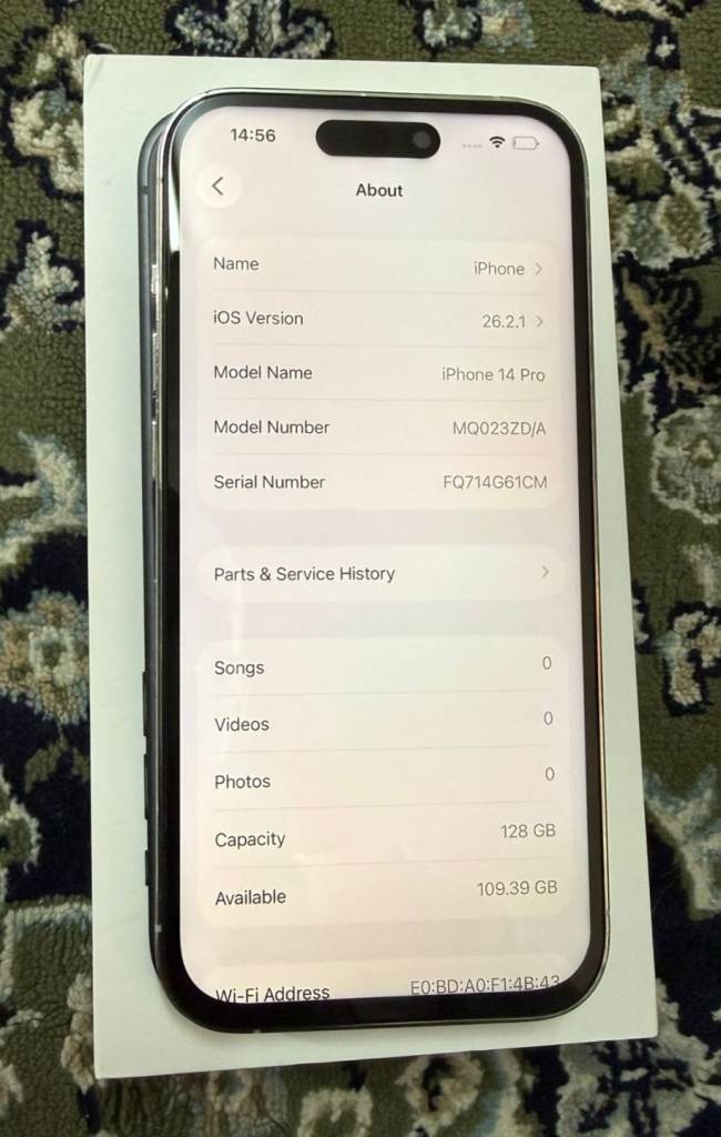 Hello, I am selling a iPhone 14 Pro 128 GB Unlocked Worldwide sim card 💜