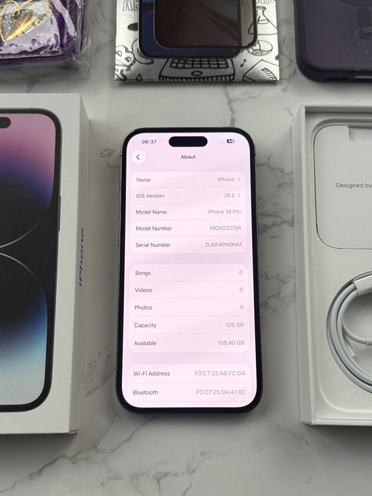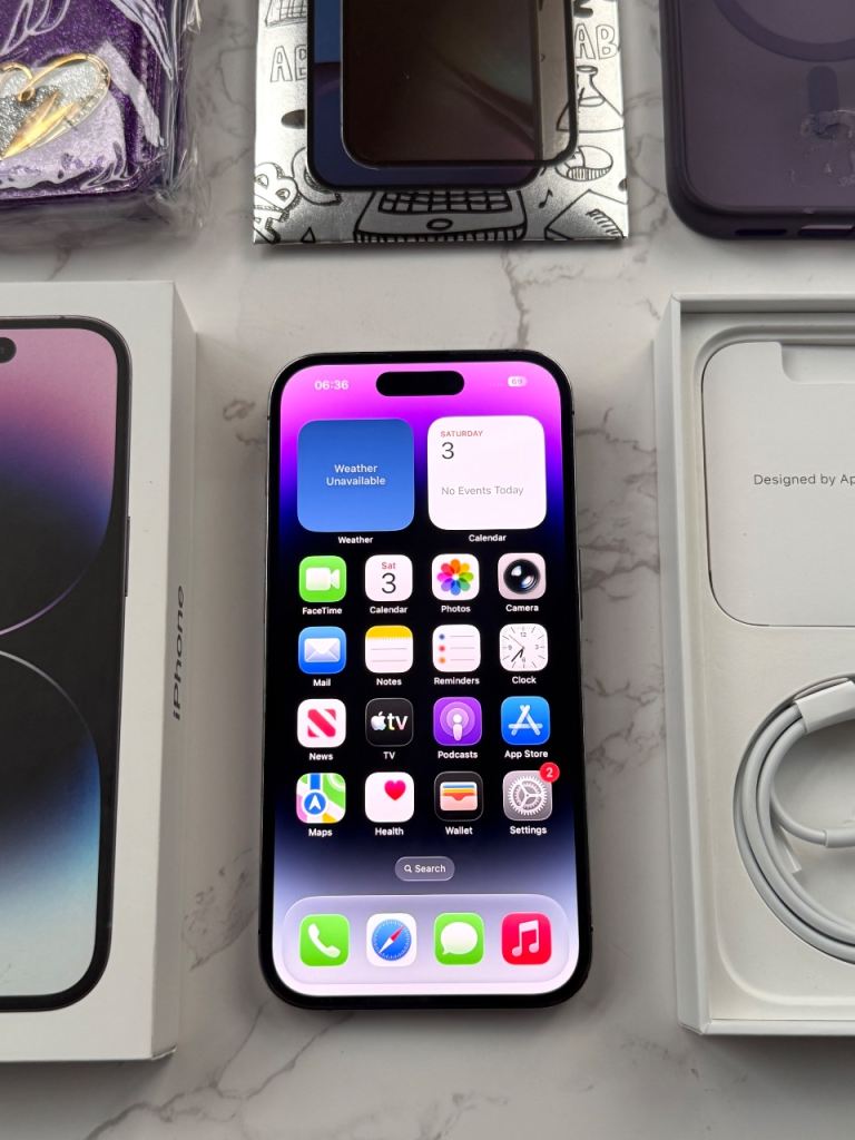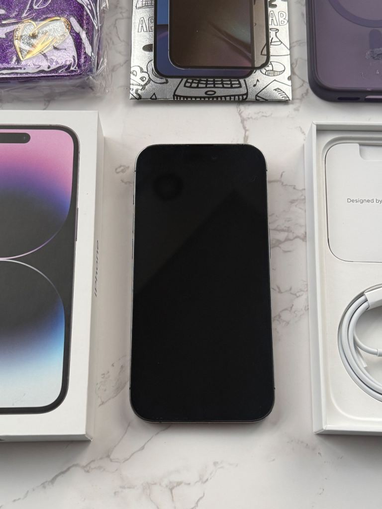 Apple iPhone 14 Pro 128GB Unlocked Deep Purple – Good Condition- Boxed- Bundle