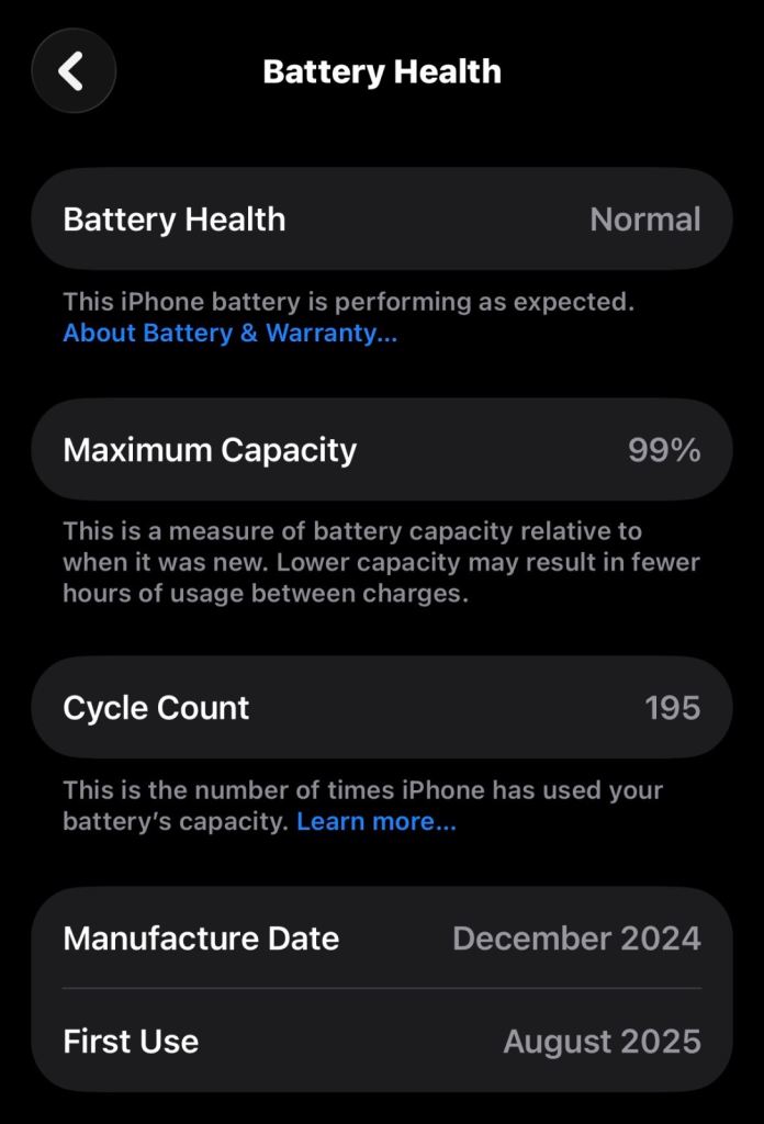Battery Health: 99%