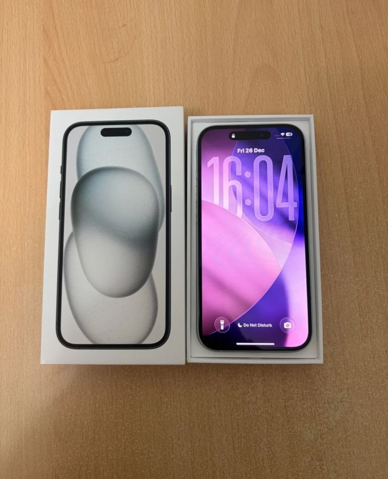 Apple iphine 15 white 128gb unlocked to all networks comes with the box and charger fully working order and in excellent condition