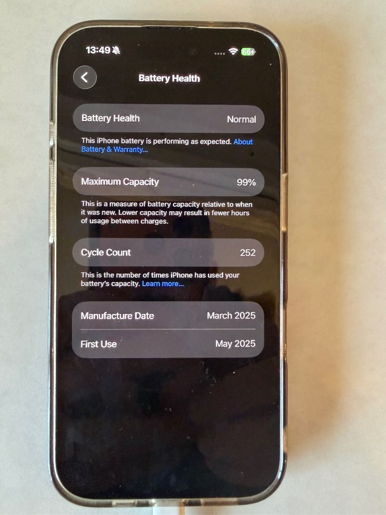 Purchased new from vodaphone late May 2025 - 99% battery performance - like new - includes original box