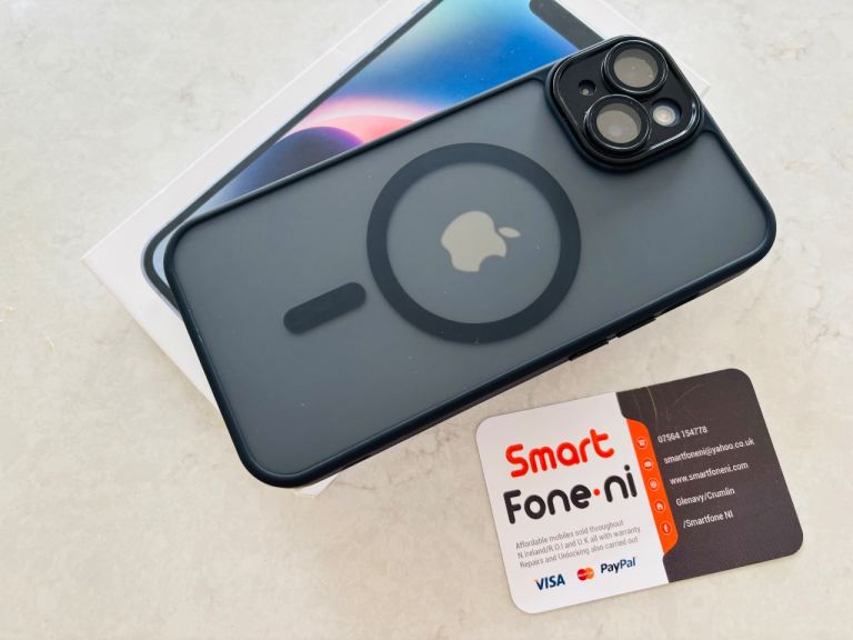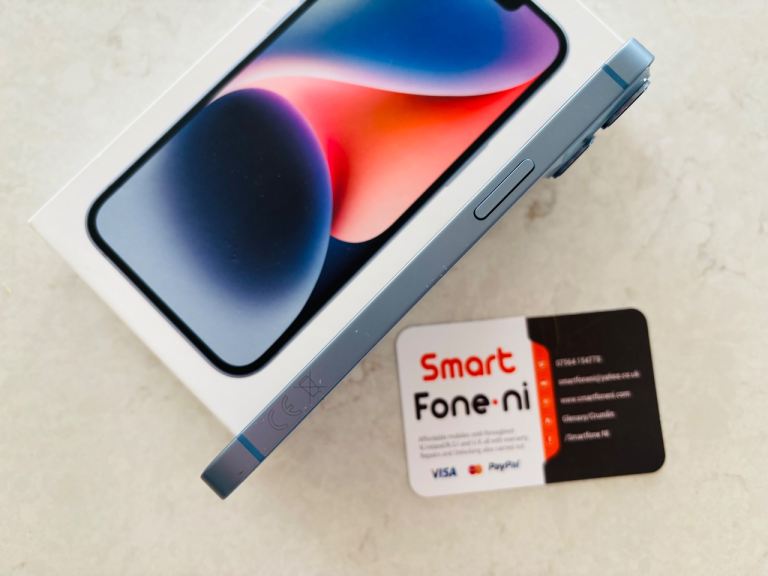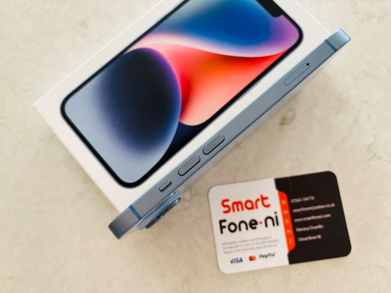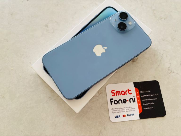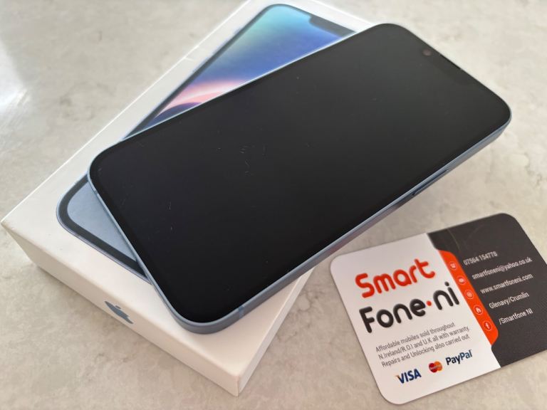 Blue iPhone 14 .128GB. 6 month warranty. Lisburn. Delivery available .