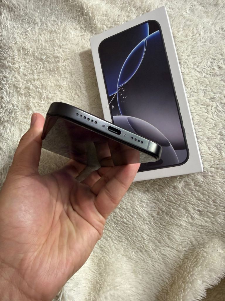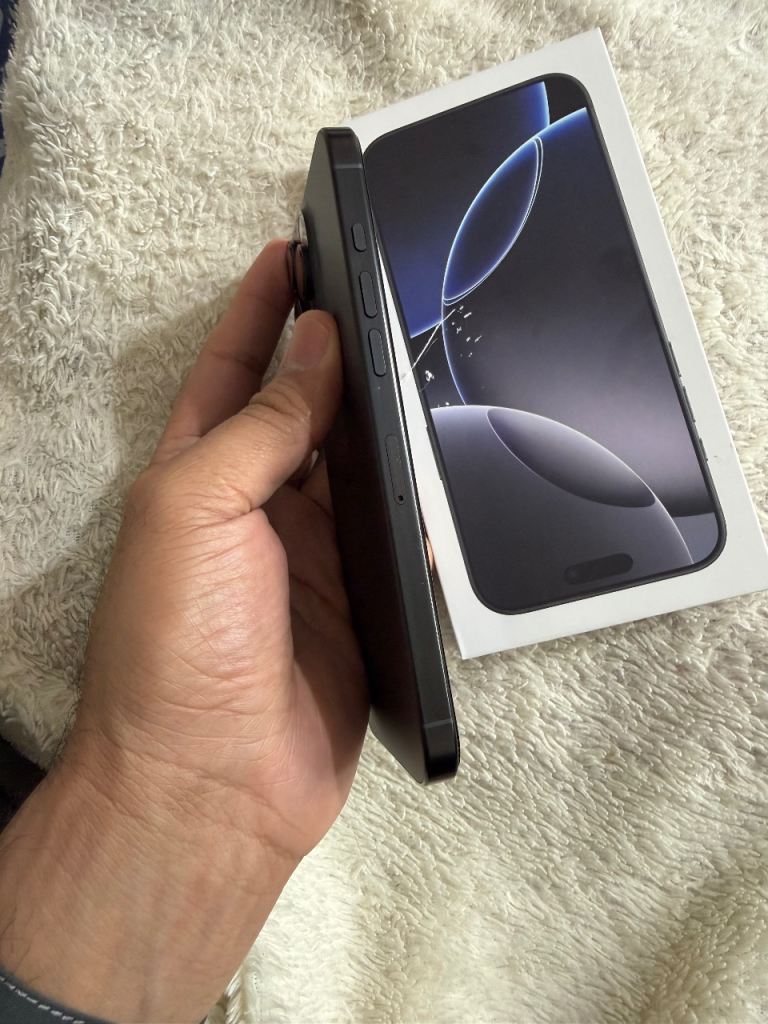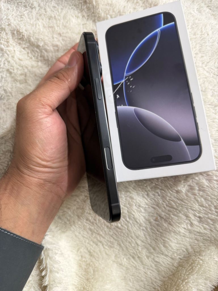 iPhone 16 Pro Max 256gb Black Titanium is in excellent condition without any scratches.