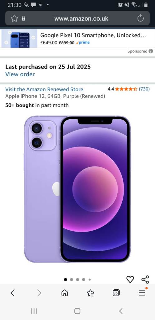 Posting for 12+ yearsIphone 12 64Gb Purple (used)