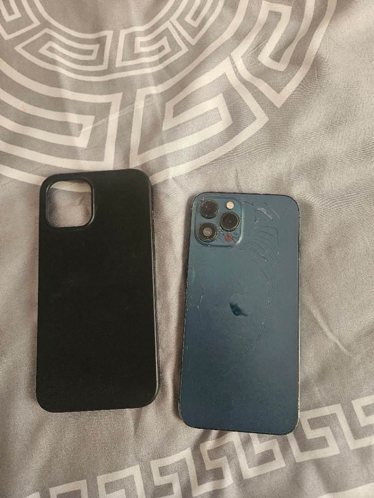 Has rear crack but all features work. Facial id large 6.7 inch display. Stylish design apple pay, great apple.store apps