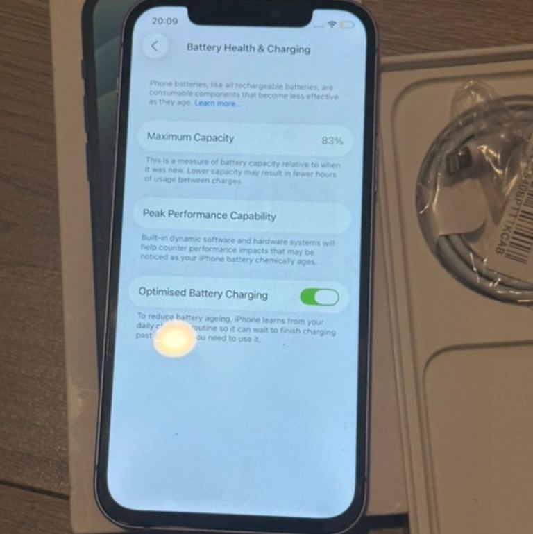 I have an iPhone 12 in excellent condition with 64GB of storage. It’s fully working and the battery is at 83%. The screen has been replaced and there are no problems with it or the phone. It comes with a box and charger and is unlocked to any network. Feel free to message me with any questions.