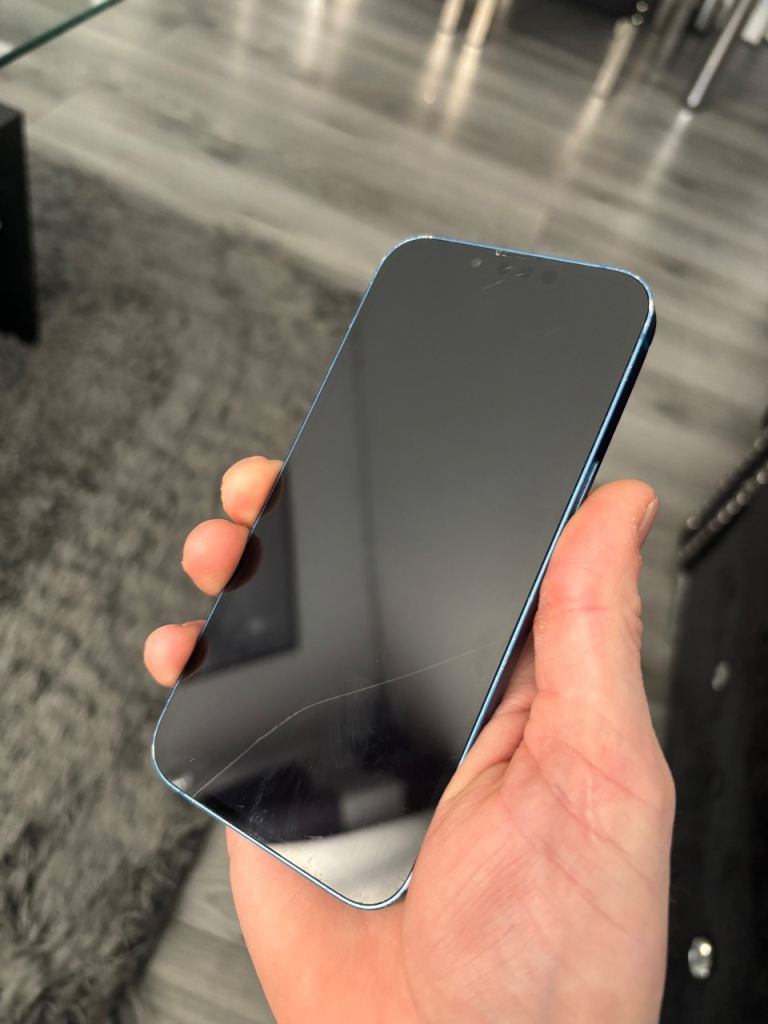 Has a very faint crack/scratch in the middle of the screen can’t hardly tell it theirs when the phone is actually on