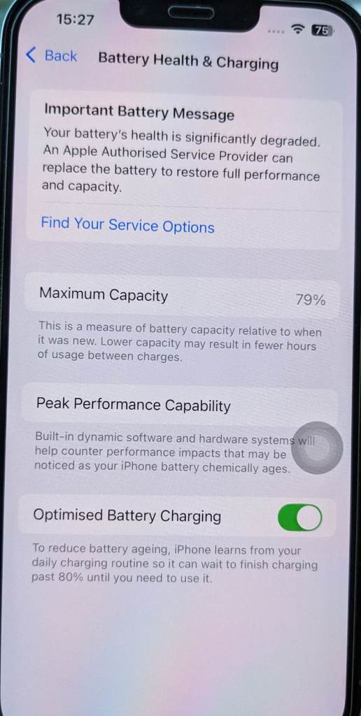 battery health is 79%.