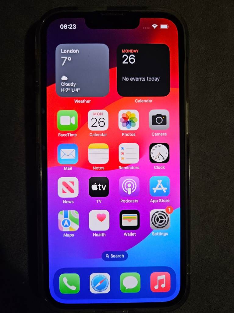 Iphone 14 128gb in midnight black. My partner upgraded a while back and this is it finally paid off with virgin (got it before they joined with o2).
