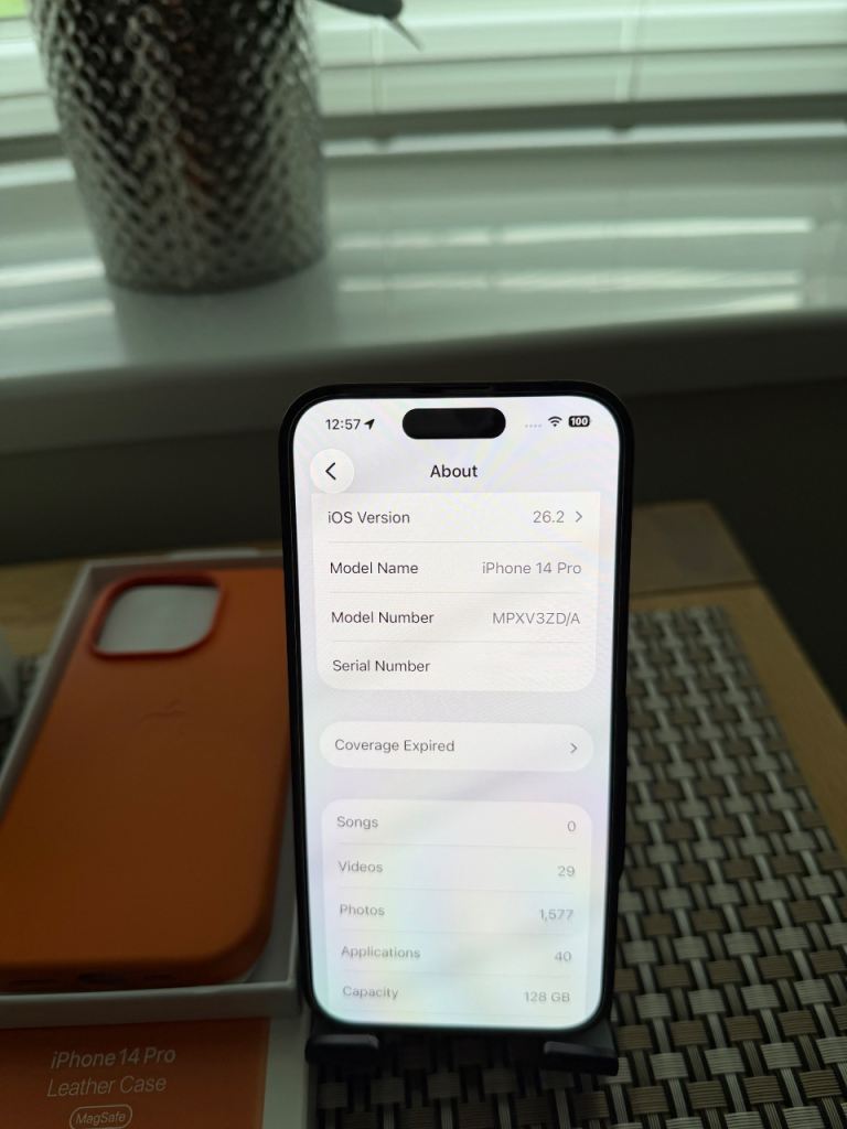 iPhone 14 Pro 128GB in Space Black mobile phone from Apple, known for its premium features and sleek design. This unlocked device offers a spacious storage capacity with everything working perfectly and like new i.e. cameras, face ID etc.