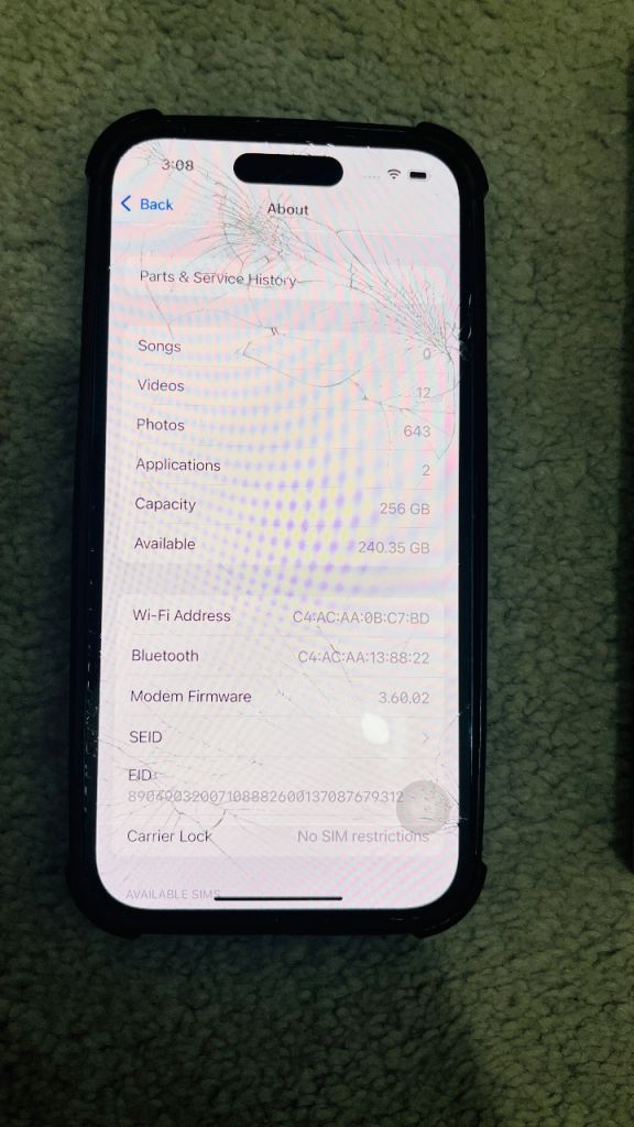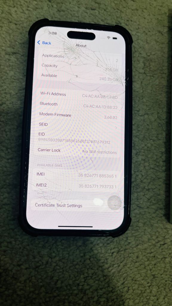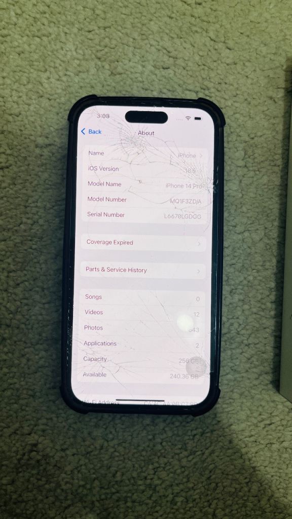 Iphone 14 pro 256 GB unlocked front and back cracked