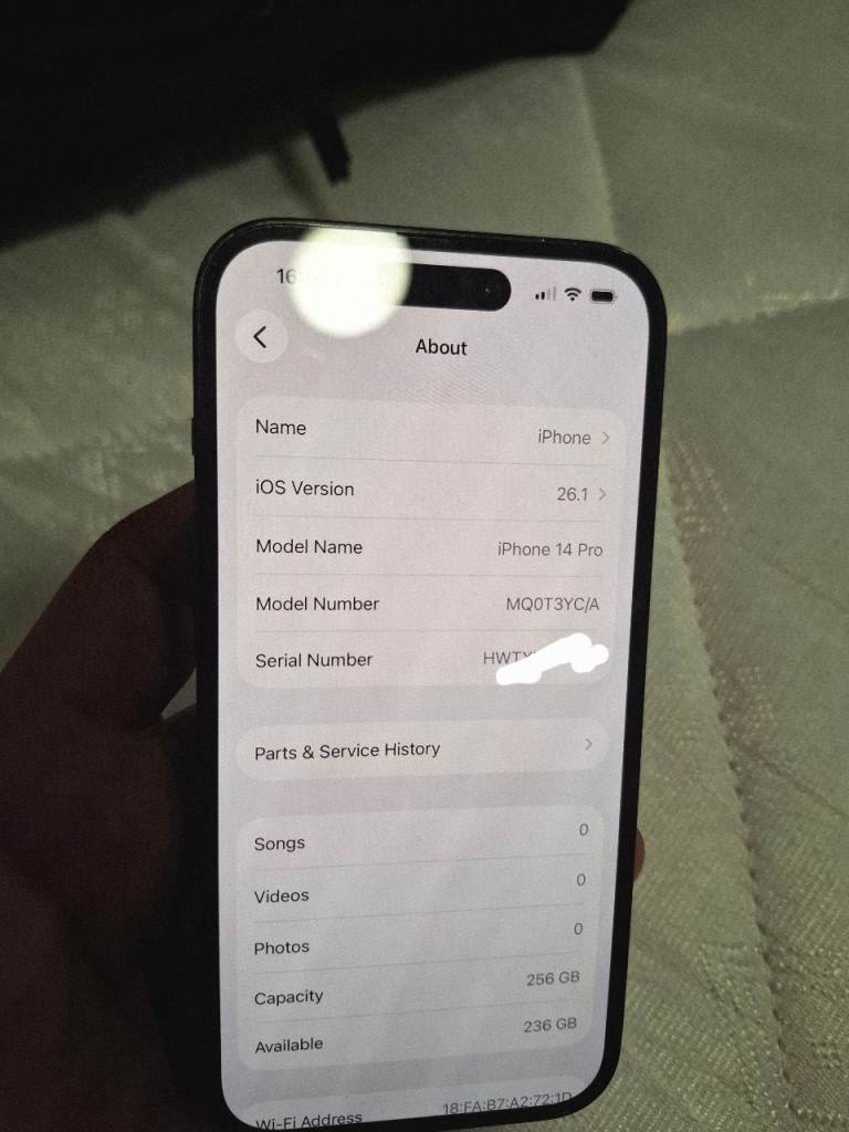 I offer here iPhone 14 pro' 256 GB storage in perfect condition ' everything works perfect ' all the parts are original ' genuine.