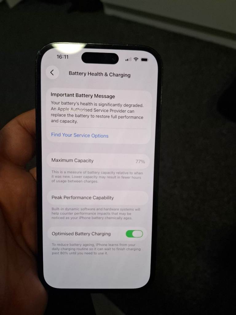 The only advantage in this mobile phone that the battery degraded to 77 as shown in picture.