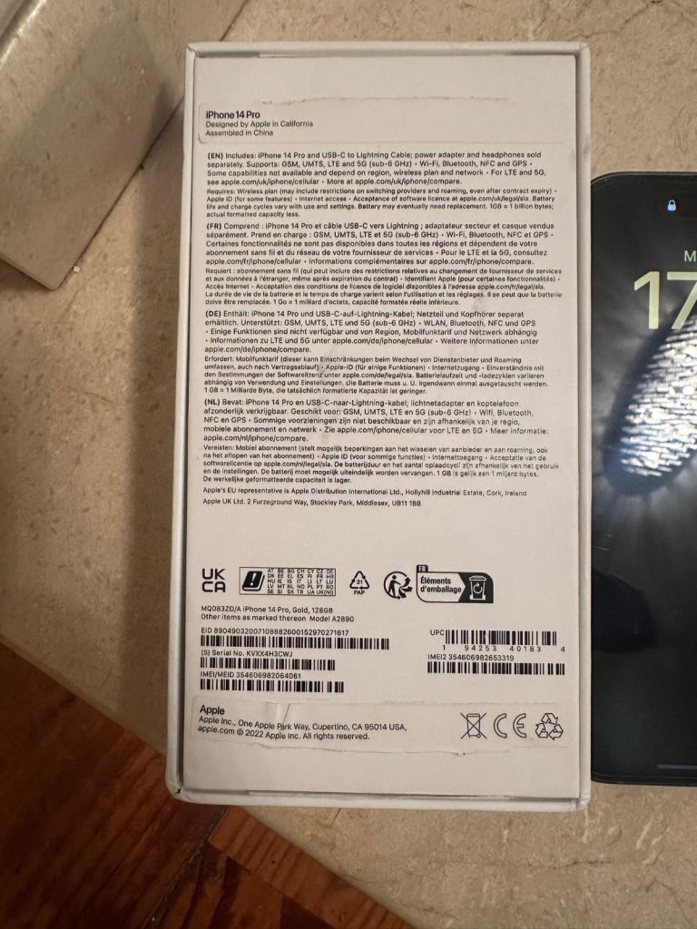 Hi there I’m selling this iPhone 14 Pro gold 128 gb storage open to all networks I’m up grading to iPhone 15 pro max the bigger one and the phone has one small crack on camera lenses that why it has camera protector and screen protector has few age related scrapes but phone works like new needs to be collection only no postage based in Newtownbutler County Fermanagh 0785/159/1202