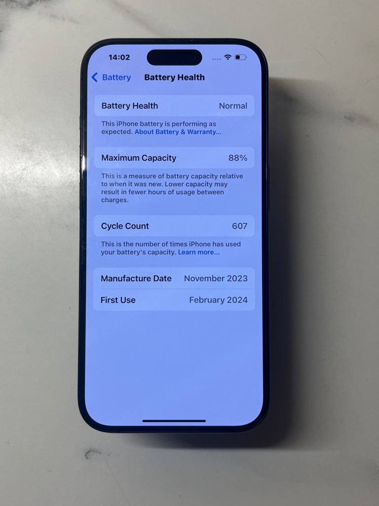 -88% Battery health and only 607 Cycles so not used much