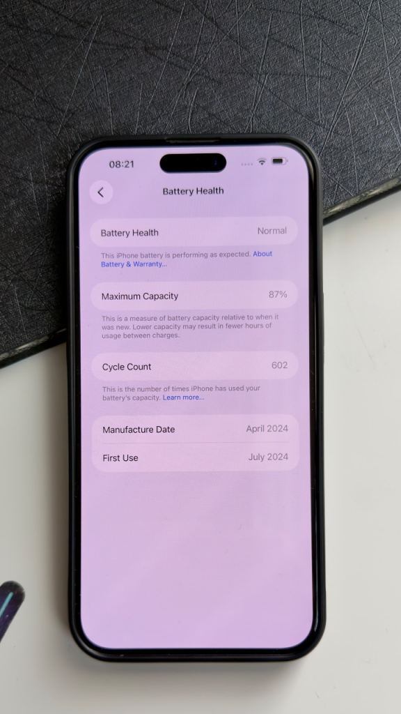 - Battery health: 87%
