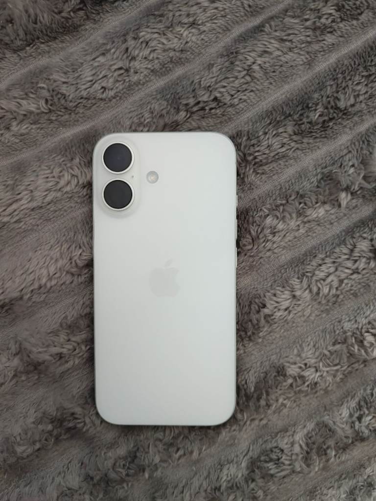 Here I am selling my iPhone 16 in white. Good condition always in a case which it will include. Will be factory reset and come with a USBC cable no plug.