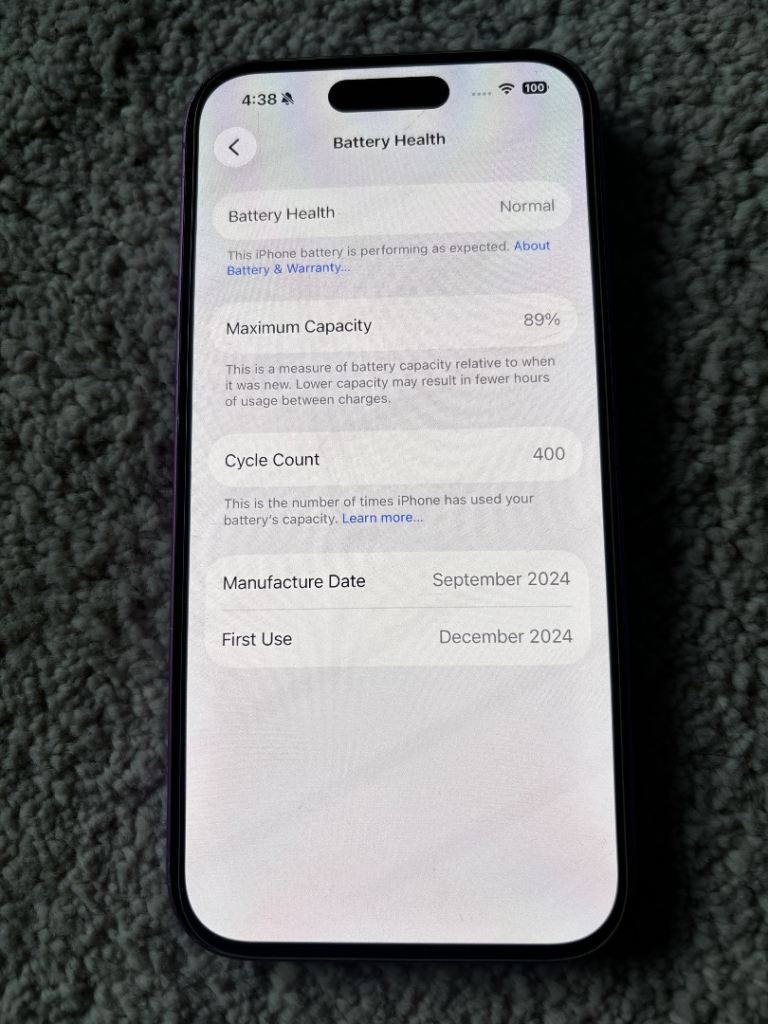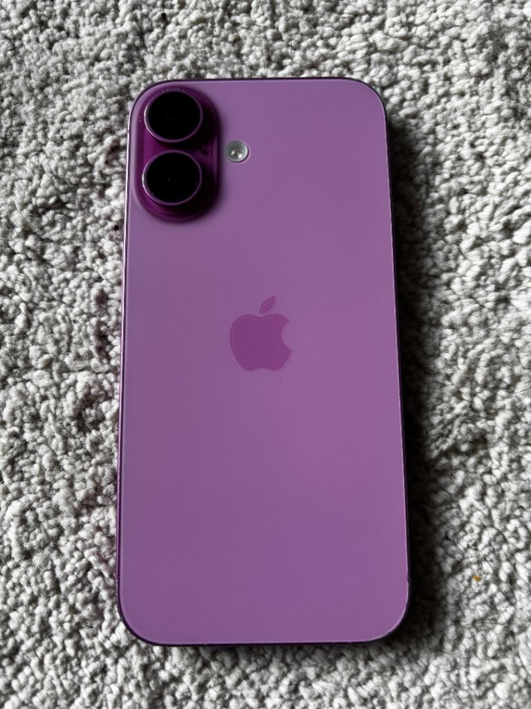 iPhone 16 for sale in pink, unlocked in good condition, please see photos- the edges are rough and the screen is scratched (none affects the use) I would grade this as a C hence the price tag of £350. Includes original box and a MagSafe case. Battery health is 89% with a cycle of 400.