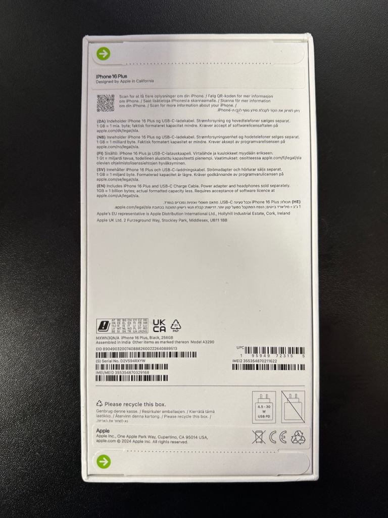 Brand new and sealed iPhone 16 Plus Black 256gb. Paid £899. Unlocked.