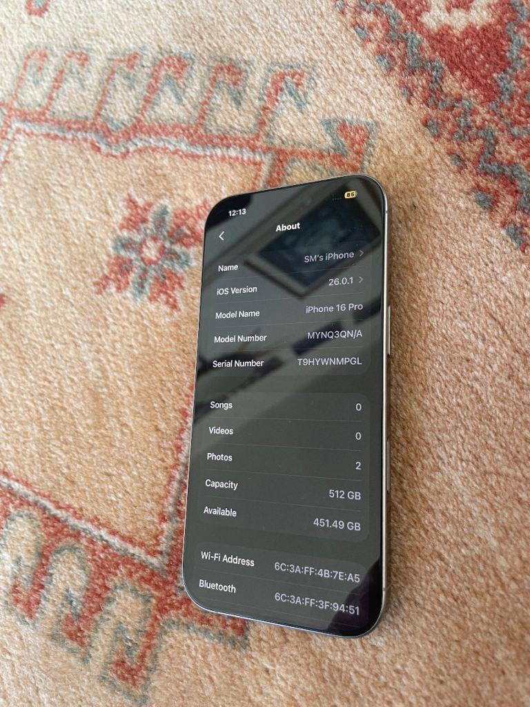 Posting for 8+ monthsIPHONE 16 PRO 512GB - 95% battery capacity (like new!)