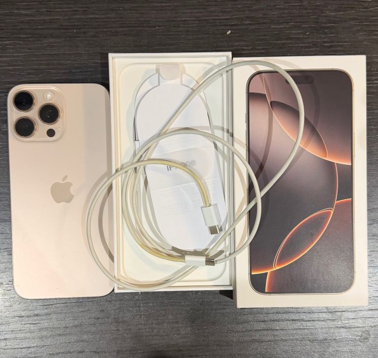 iPhone 16 Pro Max 512 GB Desert Titanium in a very good condition. Battery capacity - 98%. Was used for 1 year. Has 2 SIMs - 1 Physical and 1 ESim. All functions work perfectly.