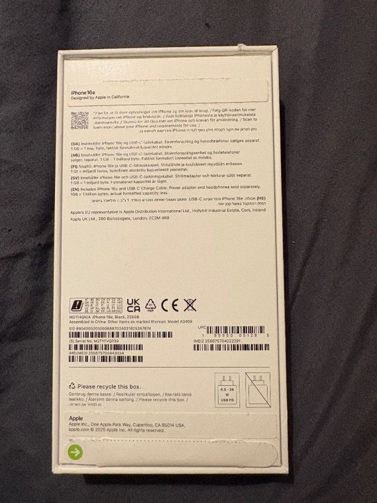 iPhone 16e 256gb fully boxed like brand new always had screen protectors on and in case will be fully wiped only selling as got upgrade collection only will not post so don’t as Newton Aycliffe 375 I no sim free