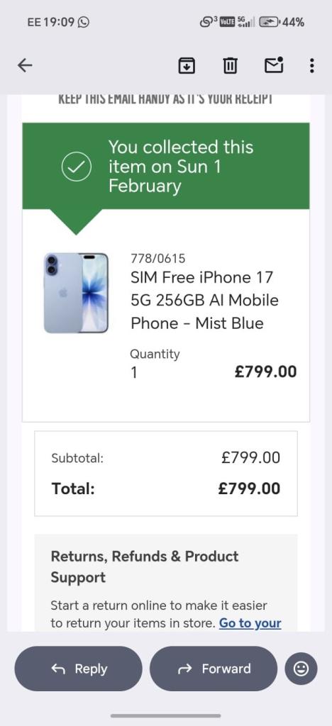 iPhone 17 for sale 3 weeks old box and charger paid £800 looking for £600 ono