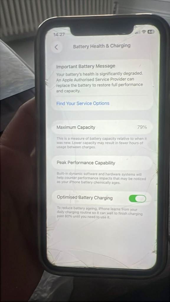 Battery capacity is at 79% which is ideal for general daily use however not so good for heavy daily use scrolling social media, watching TV or films or playing games for hours at a time. Price reflects the condition and battery percentage.