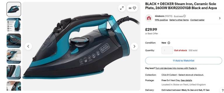 BLACK + DECKER Steam Iron, Ceramic Sole Plate, 2600W Colour Black and Aqua.
