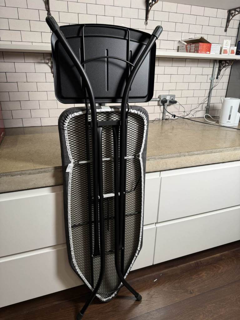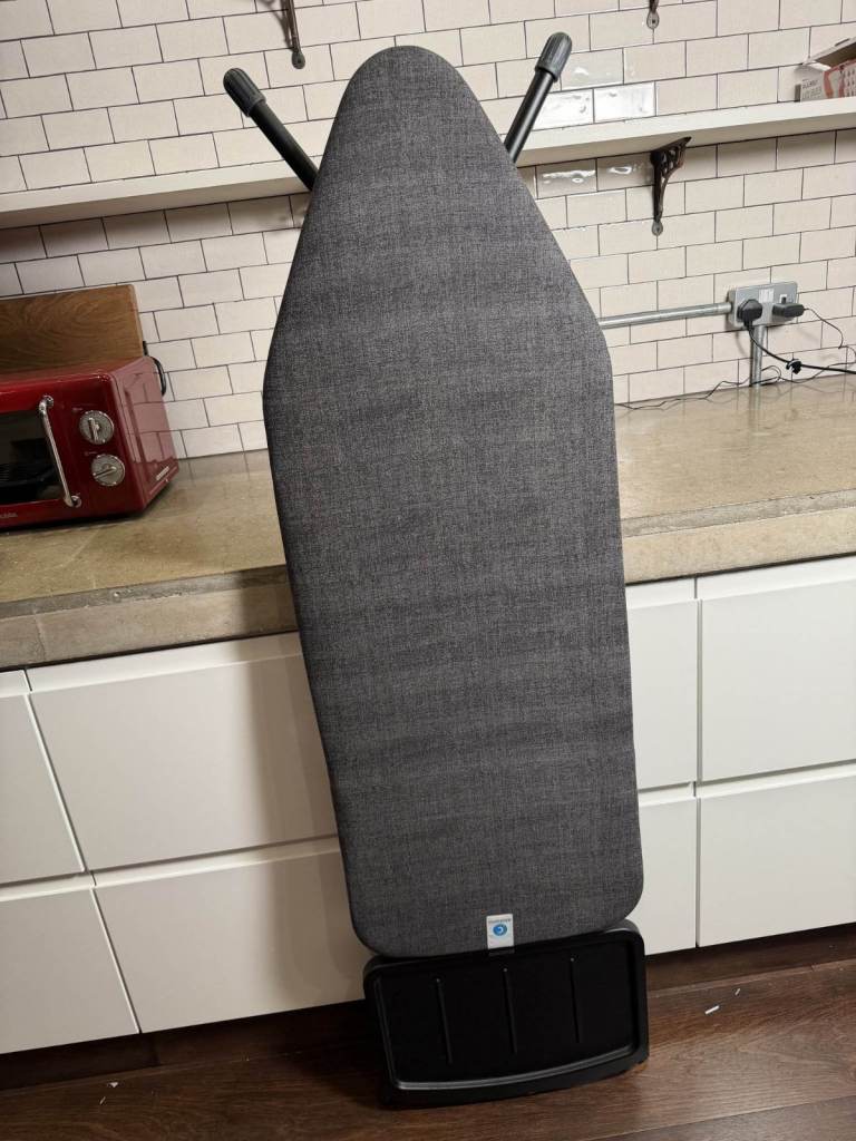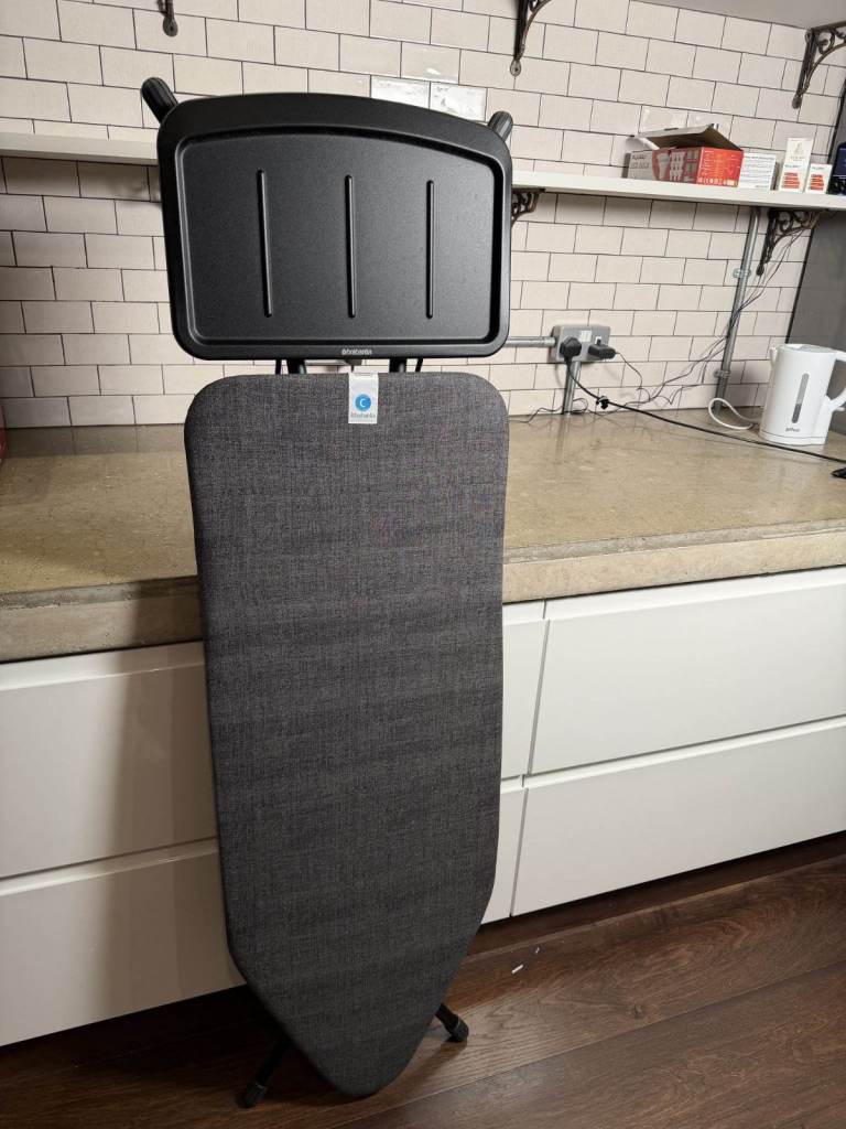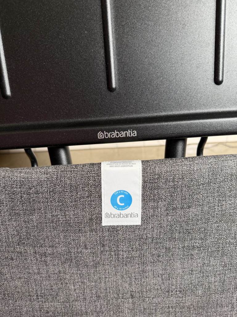 I'm selling my Brabantia Ironing Board C, which features an extra large steam iron rest and is adjustable in height. It's in perfect condition and includes a cotton cover with a foam layer for added comfort. The board is foldable and measures 124 x 45 cm, making it a great space-saver when not in use.